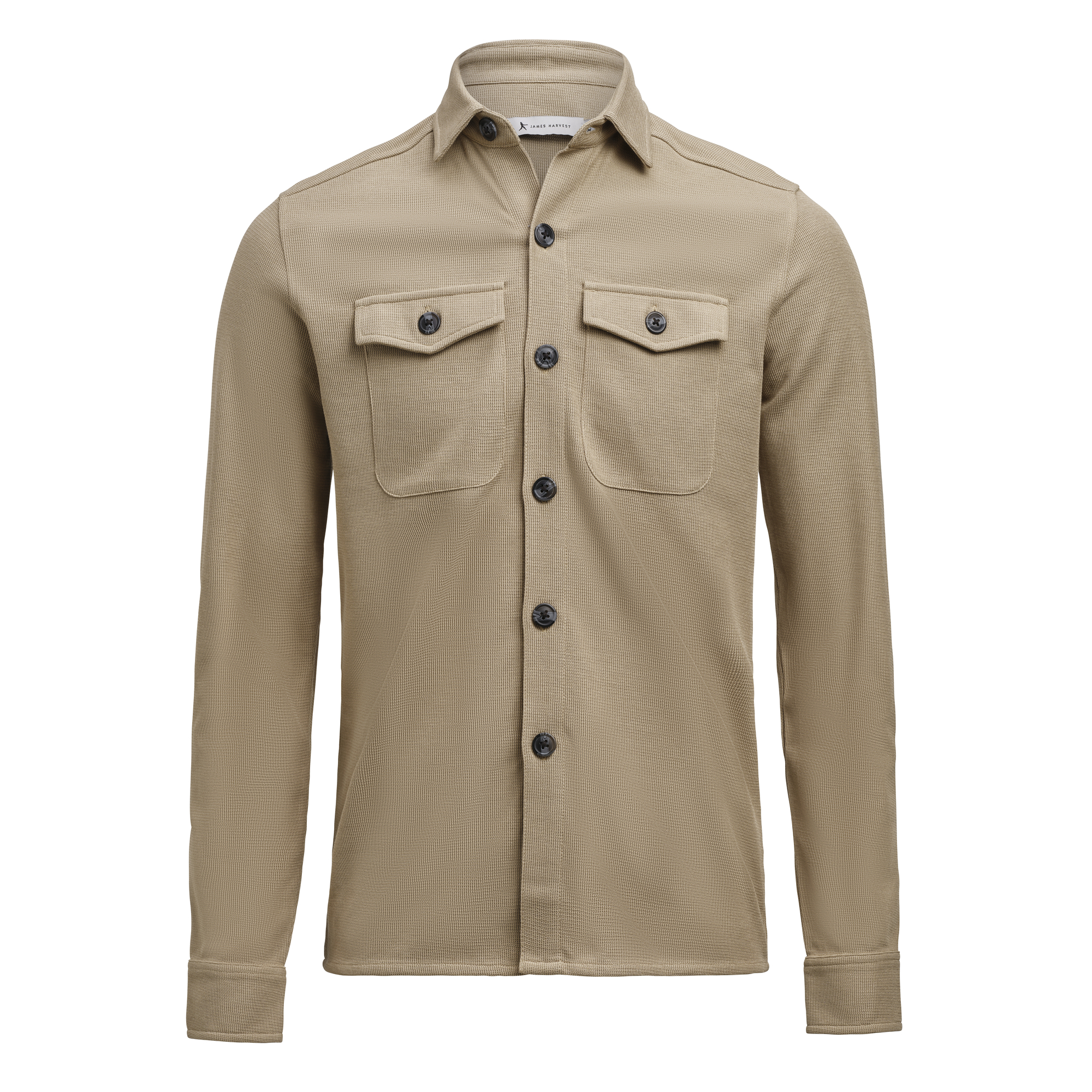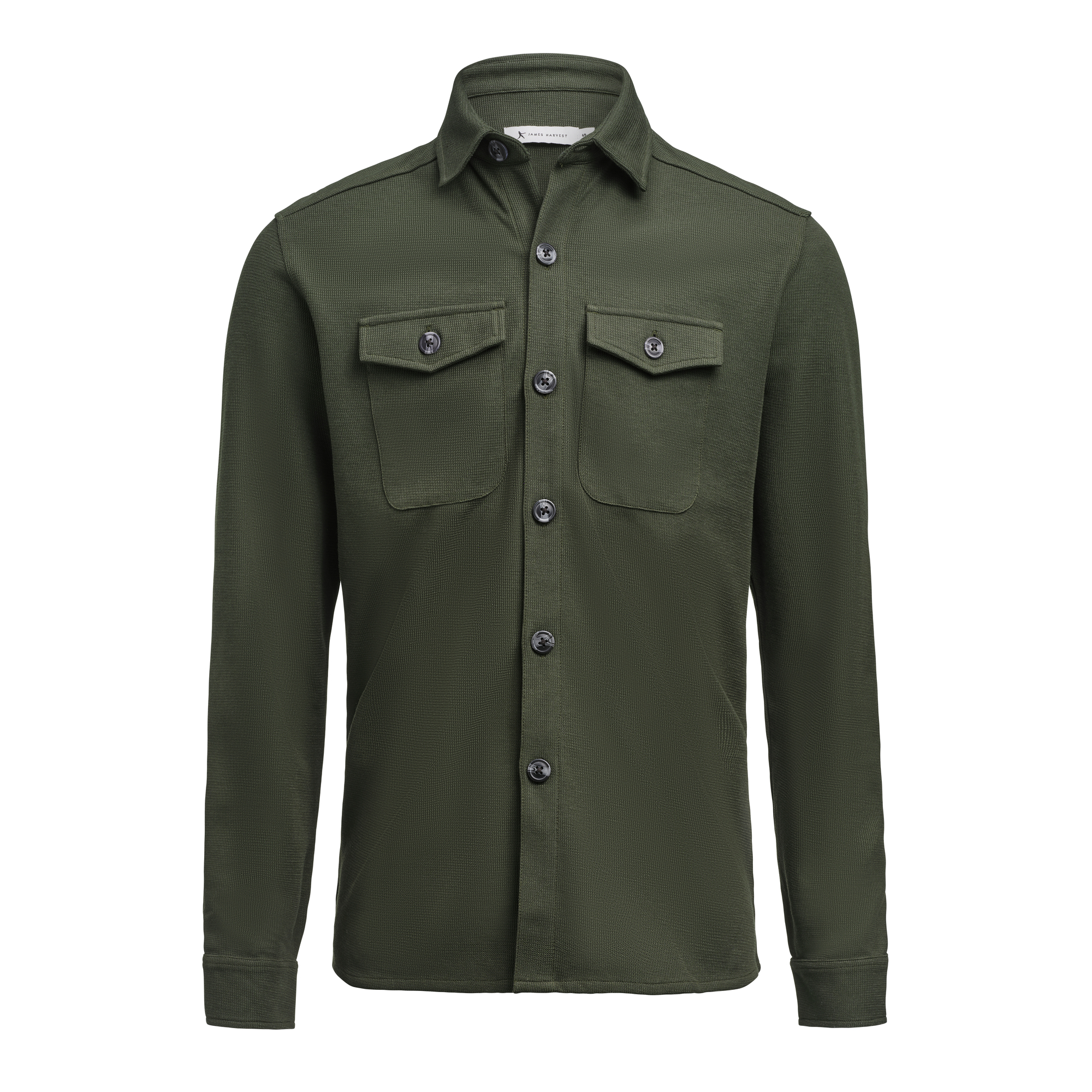 Sobrecamisa moderna confeccionada con tejido de punto waffle. Tejido compuesto por algodón orgánico y poliéster reciclado. Esta sobrecamisa está disponible en cuatro colores diferentes, cada uno con botones a contraste, y dos bolsillos en el pecho para un look juvenil. Disponible en talla unisex.