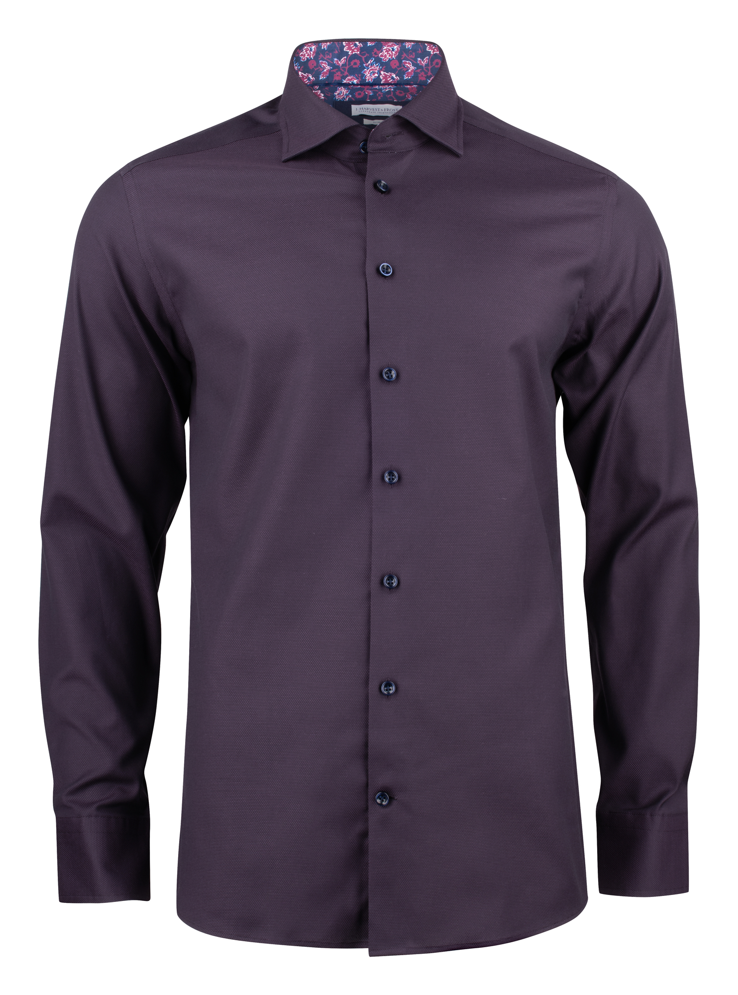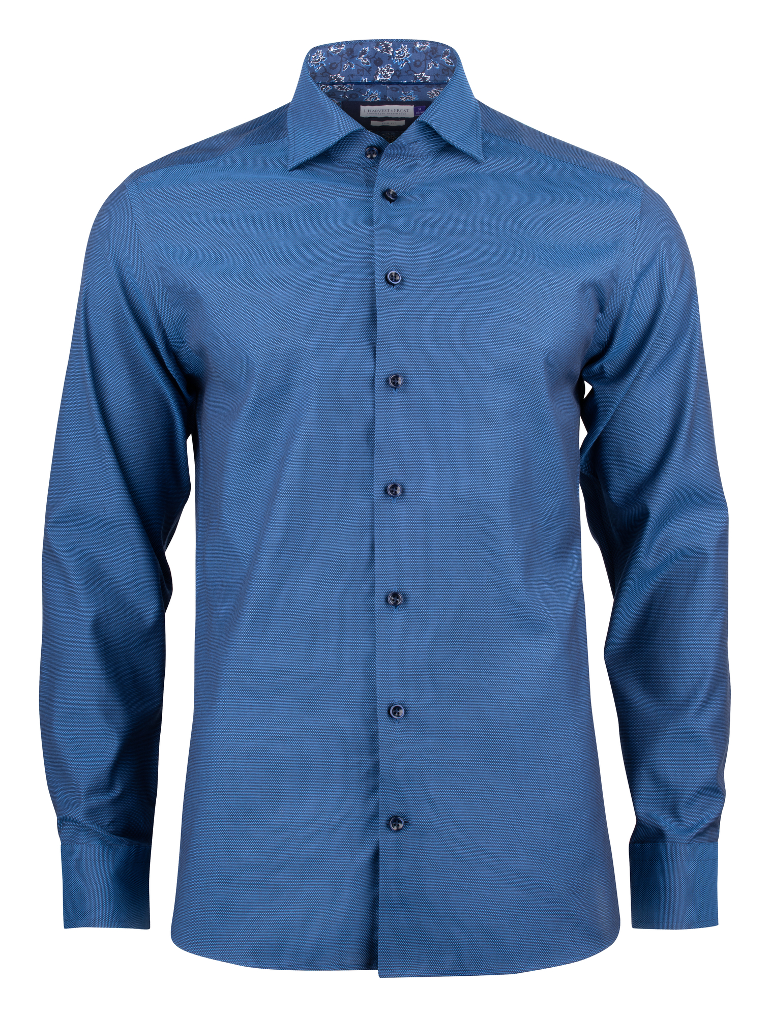 Composición: Tejido Oxford. Color en 2 tonos. Tejido elástico. 96% Algodón compacto de 2 capas, 4% elástico. Tratamiento medioambiental patentado Non-Iron. Costuras principales selladas. Manga larga. Puño con borde redondeado y ojal adicional para gemelos. Botones de 4 mm de grosor.