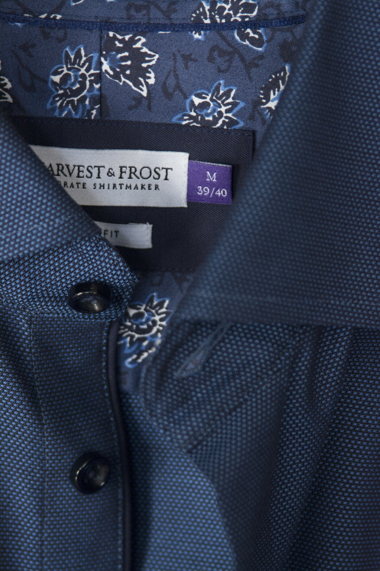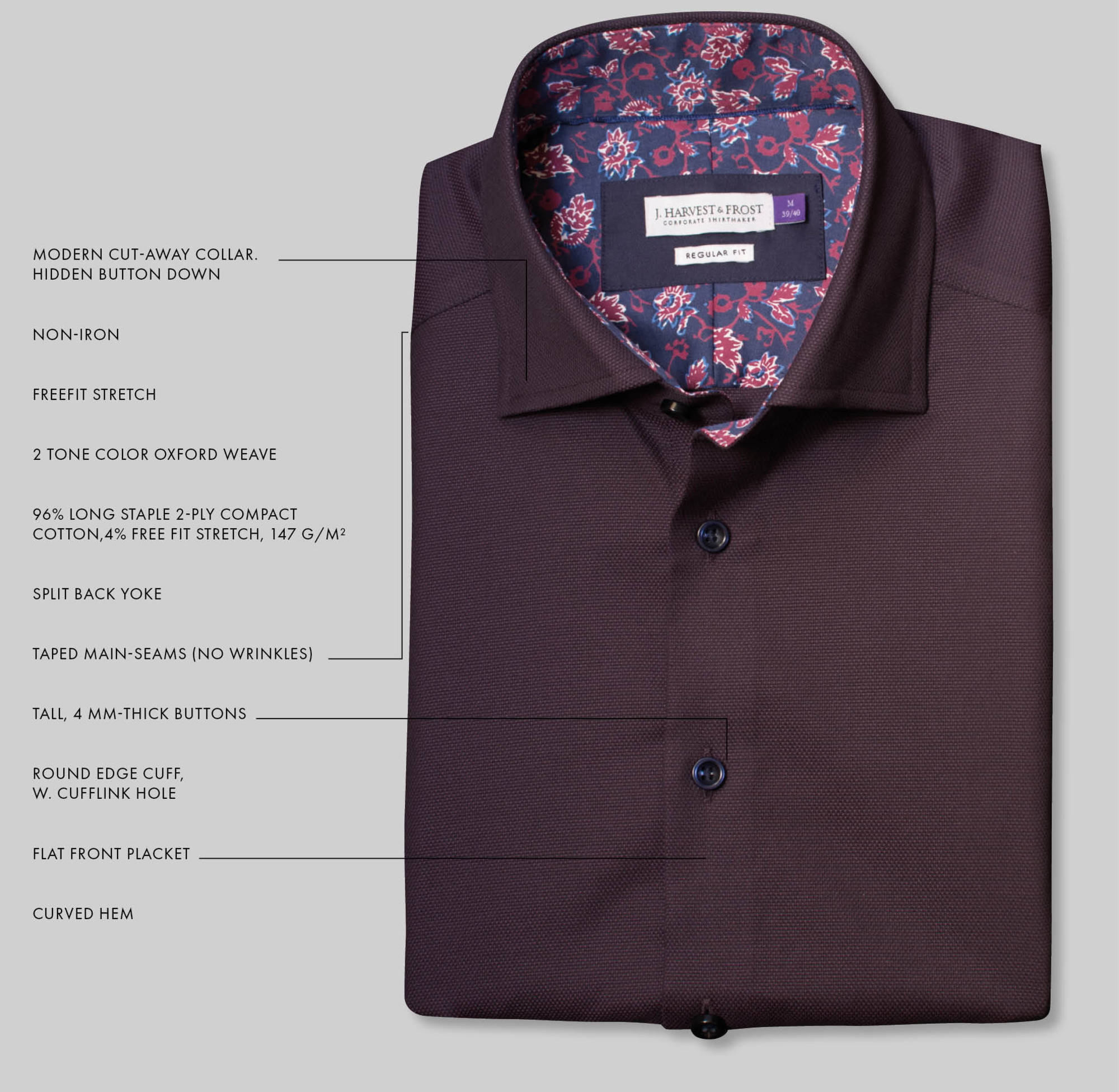 Sofisticado tejido oxford a dos tonos con un 20% de elasticidad en trama que la hace suave, súper cómoda y Non Iron a su vez.