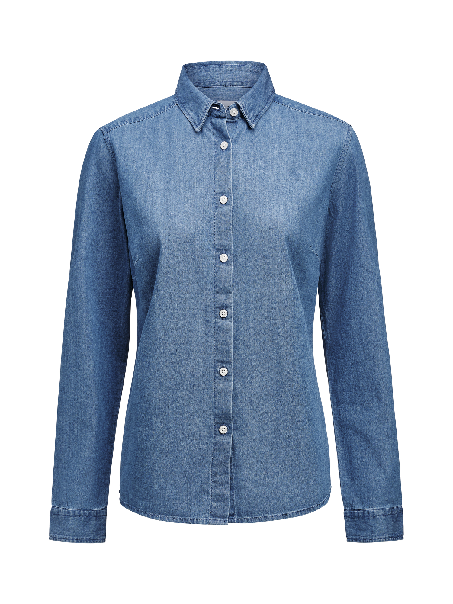 La camisa Sayville es una camisa con aspecto vaquero, confeccionada en algodón 100 % orgánico. Esta camisa tiene un cuello abotonado oculto y botones de color perla para conseguir un aspecto clásico de camisa vaquera. Disponible en corte entallado para hombre y corte contemporáneo para mujer.