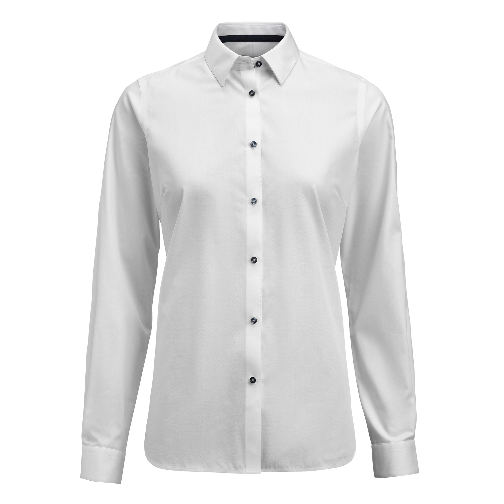 Composición: Colores lisos. 60% Algodón orgánico, 40% Poliéster reciclado. 134 g/m2. Easy Care. Costuras principales selladas. Manga larga. Puño de ángulo simple, con ojal extra para gemelos.