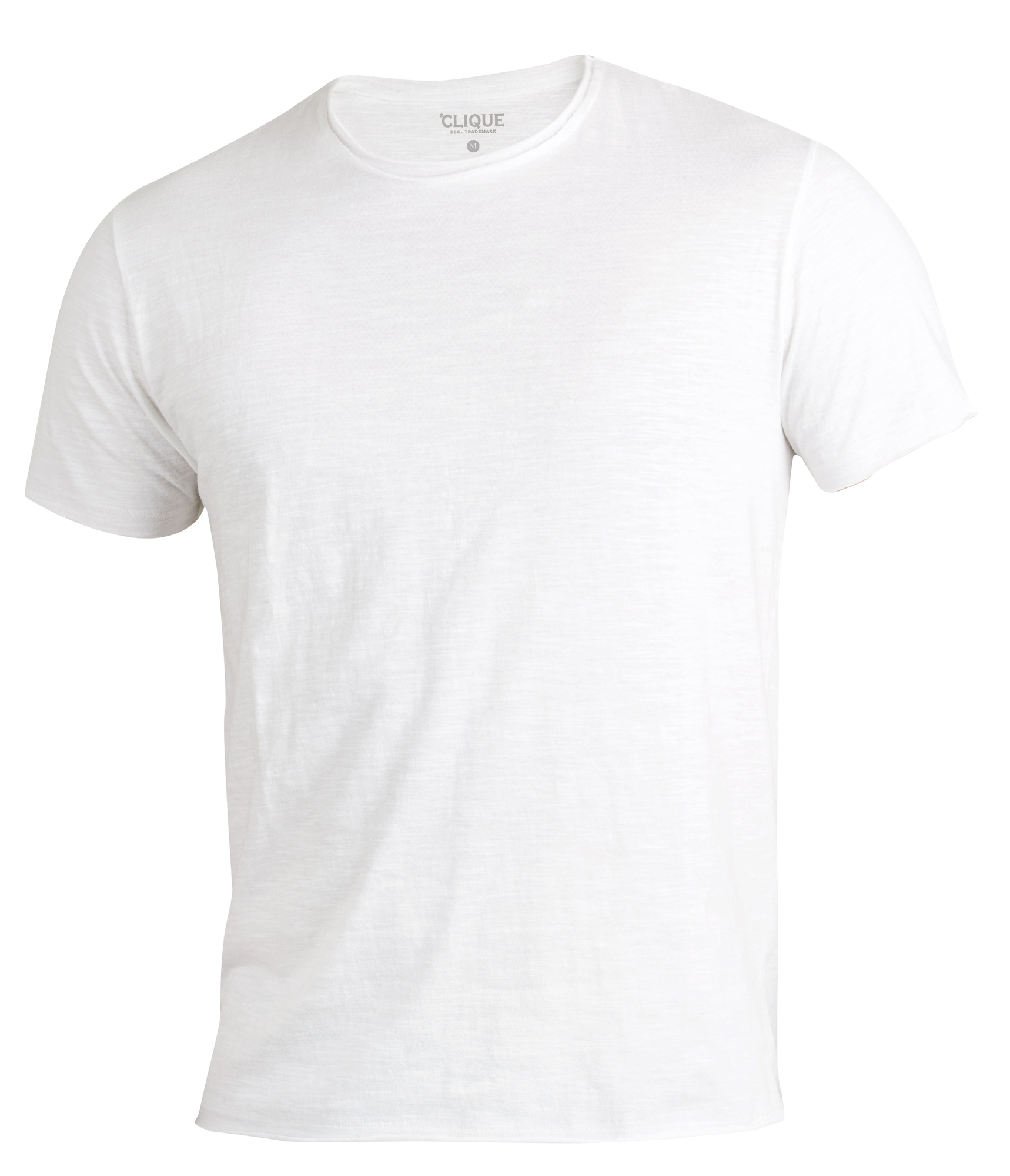 Camiseta con ajuste moderno en algodón slub jersey. Mangas con una vuelta. Cuello redondo ancho en versión femenina.