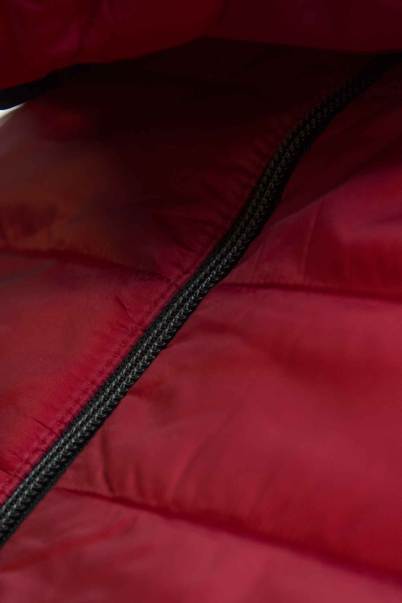 Chaleco Softshell ligero. Canesú, paneles laterales delanteros y traseros de softshell (tejido 1). Cuerpo (frontal y trasero) acolchado ligero (tejido 2). Composición: Tejido 1) Softshell; 94% Poliéster, 6% Elastano unido a polar 100% poliéster. Tejido 2) 100% poliéster con acolchado «Bluesign» (100 g/m²)