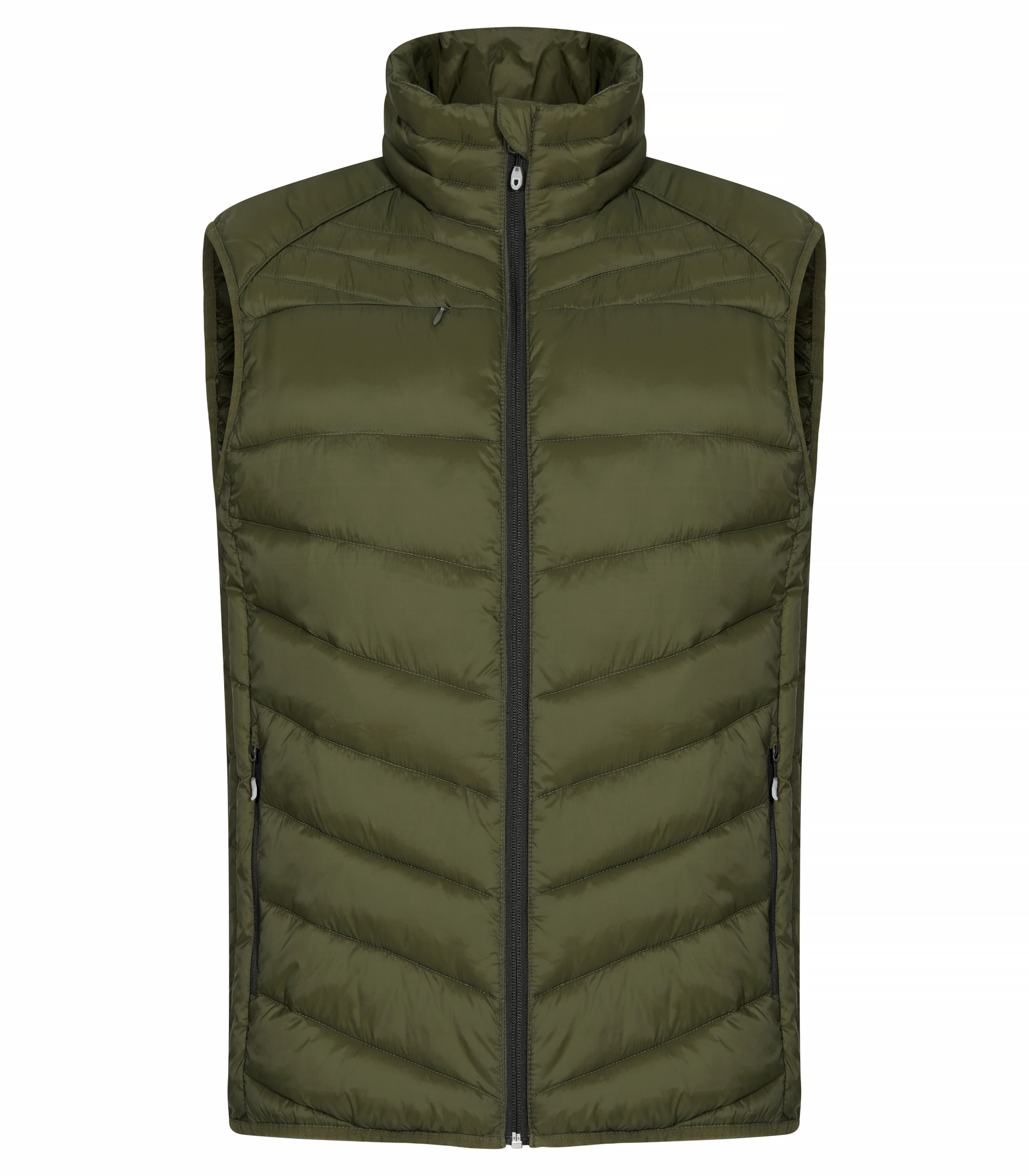 Chaleco ligero cálido con acolchado similar al plumón. Hecho de 100% poliamida reciclada. 3 bolsillos exteriores con cremallera y 2 bolsillos interiores. Cinta elástica en bajo y brazos. Versión mujer con capucha desmontable. Viene con solución para auriculares y tiradores de cremallera.