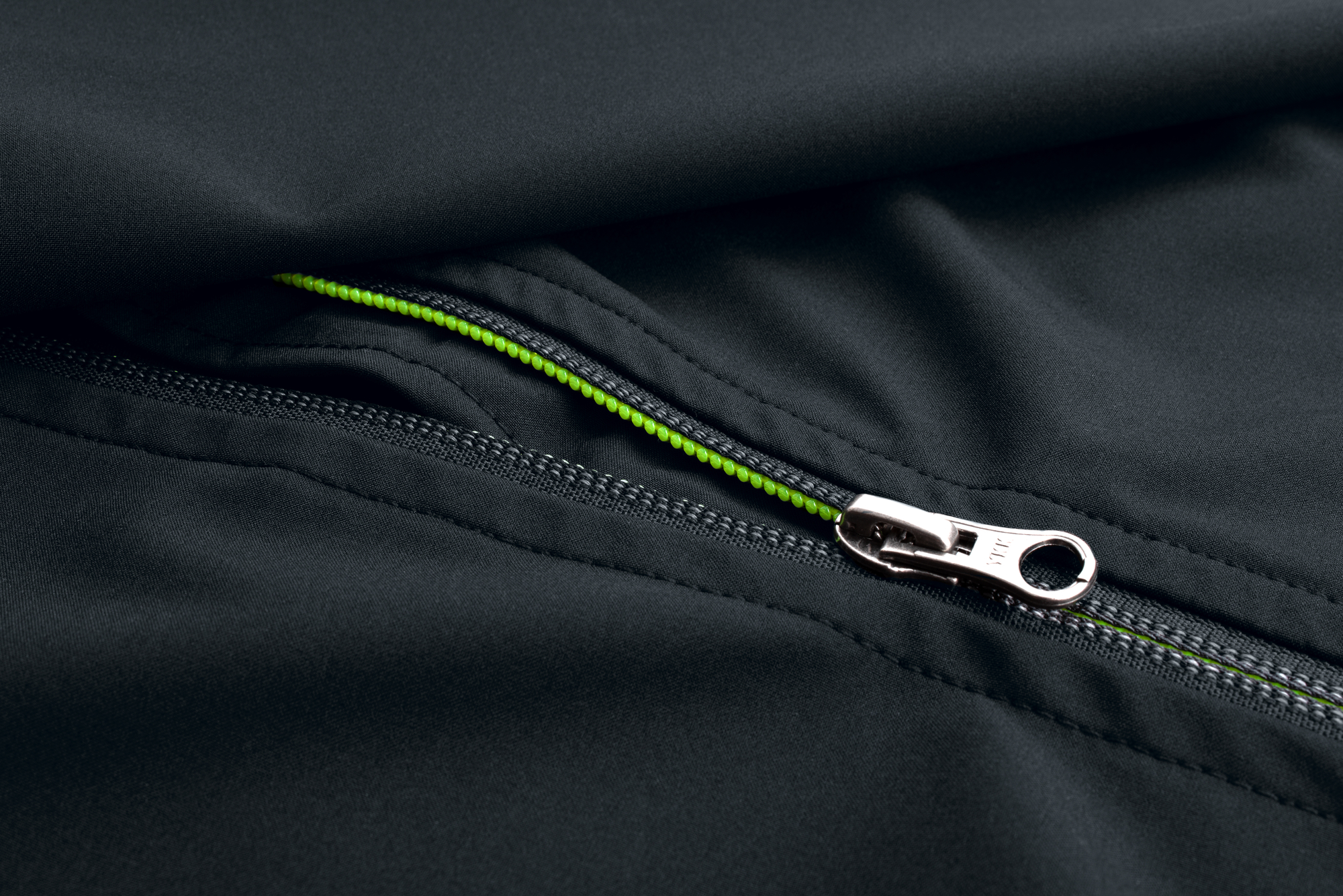 Chaqueta repelente al viento y al agua en un ligero material elástico. Cremallera bidireccional en la parte delantera con solapa cortaviento interna y protector de barbilla para evitar rozaduras. Bolsillos laterales con cremallera. Bolsillos interiores, uno con solución para manos libres. Agarre para el pulgar en los extremos de las mangas. Cintura ajustable con cordón.