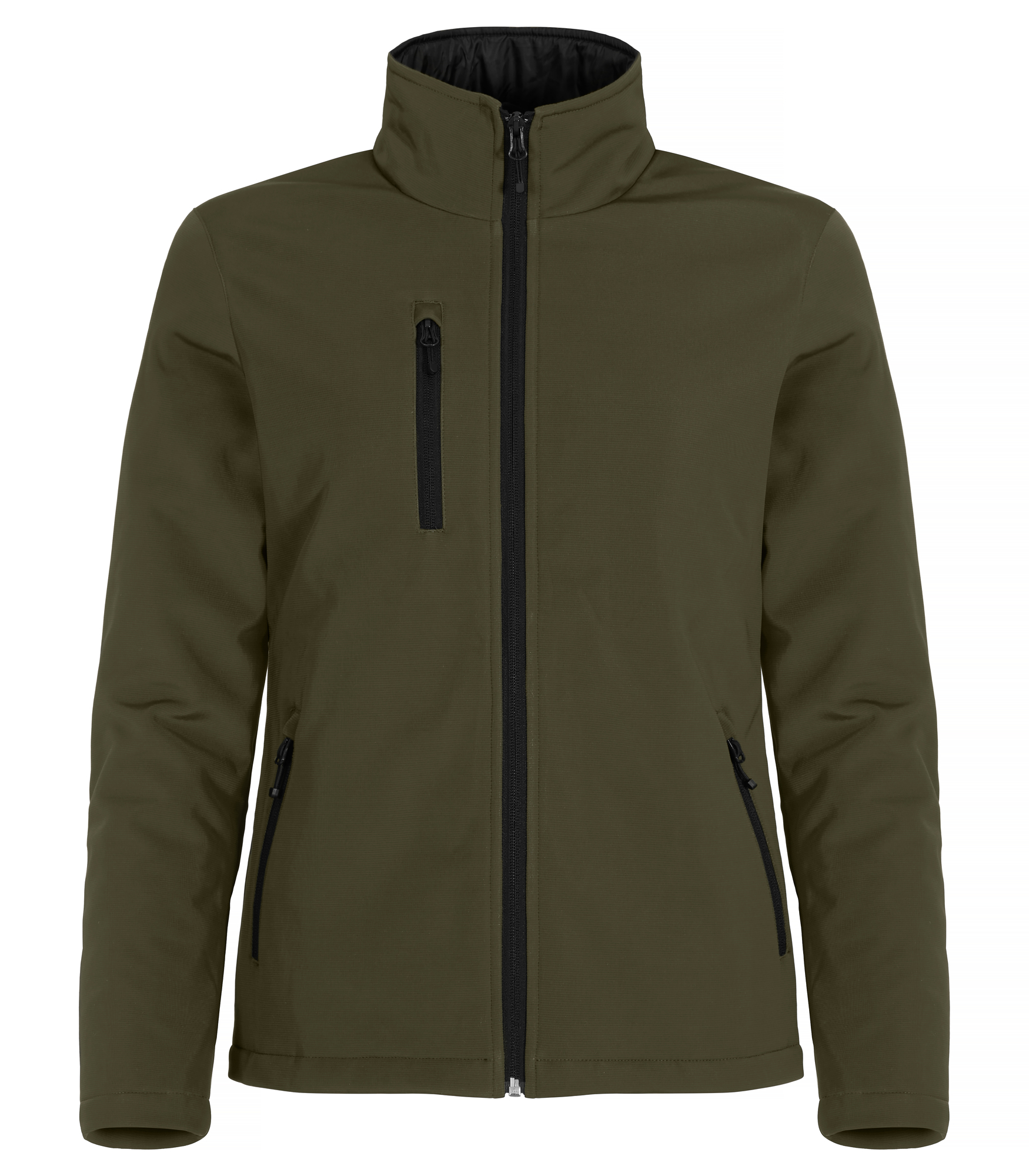 Chaqueta softshell acolchada. Tres bolsillos exteriores con cremalleras SBS y un bolsillo interior. Forro negro con cremallera oculta para facilitar el marcaje. De fácil re etiquetado.