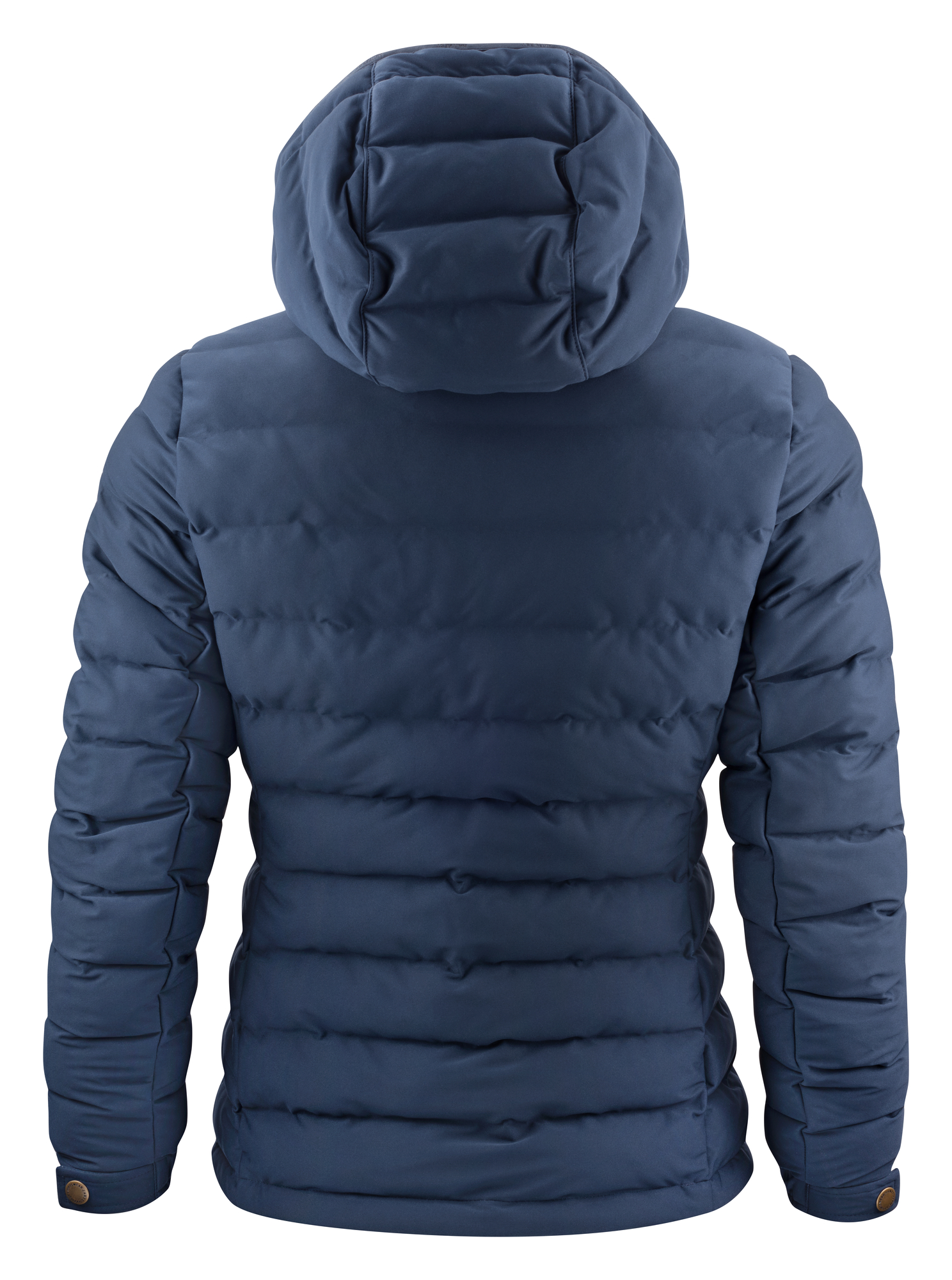 Chaqueta acolchada de invierno en poliéster reciclado. Cremallera waterproof frontal y bolsillos laterales. Bolsillos laterales que al estar el acabado cogido con la costura de la chaqueta por dentro, pueden utilizarse como bolsillos interiores también. Puños ajustables con botones a presión. Capucha ajustable con cordones elásticos en los laterales, acabado con una tapeta elástica en la costura. WP 3000 / MVP 3000: Testeado según las normas ISO 811:2018 y ASTM E96/96M.