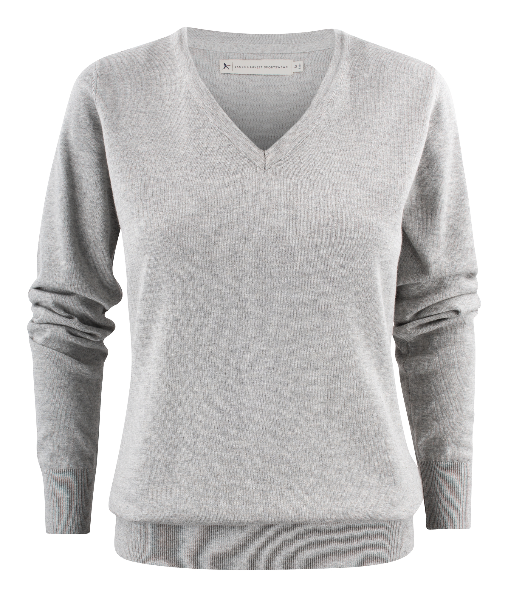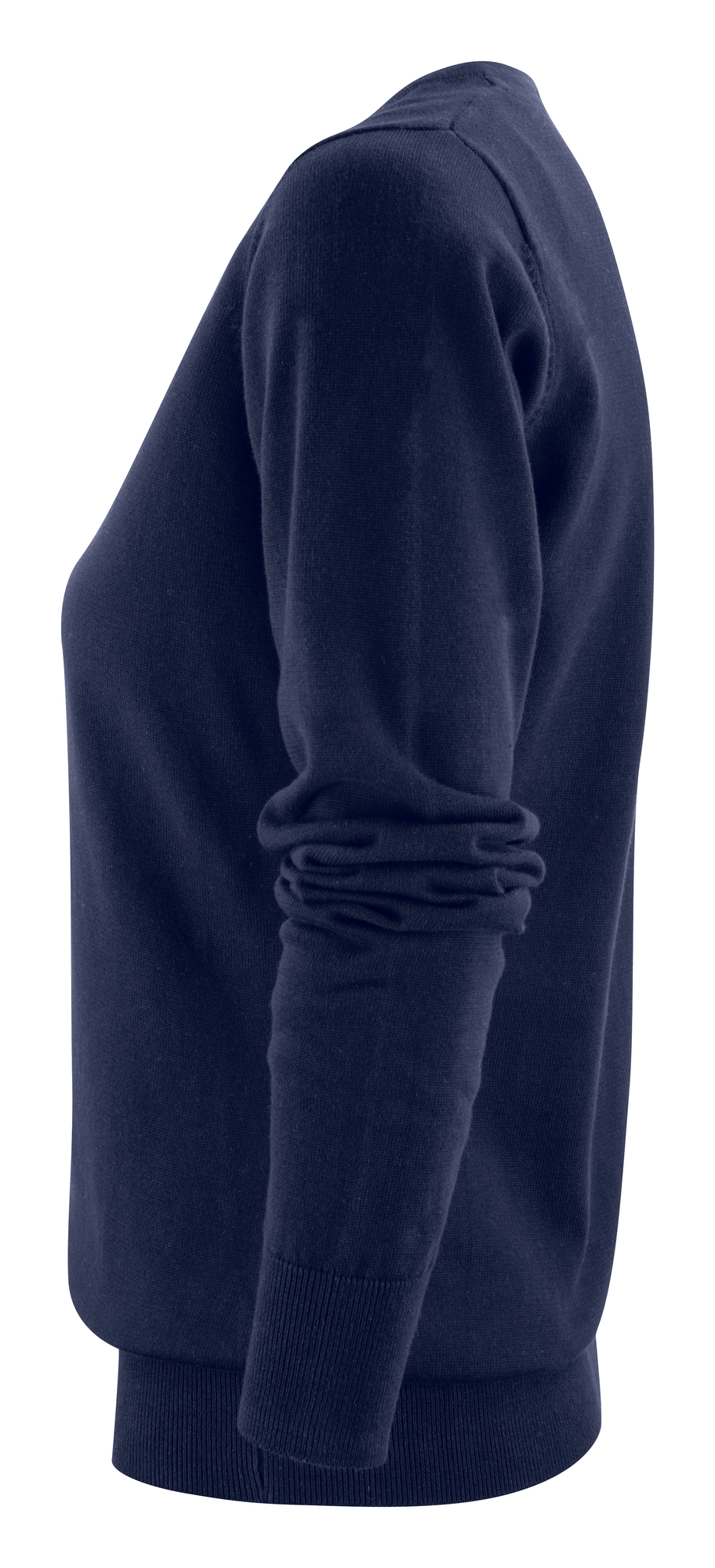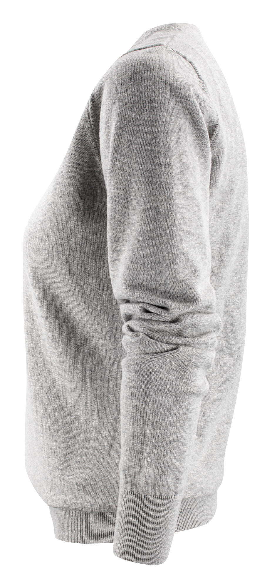 Suéter de punto con cuello en V, canalé 1×1 en dobladillo y mangas. Composición: 100% Algodón orgánico