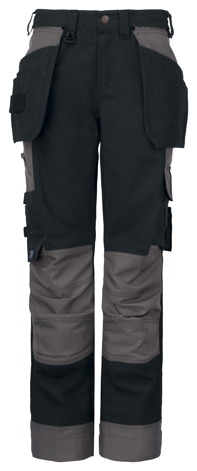 Pantalones de mujer de algodón resistente y refuerzos de Cordura®. Bolsillos desmontables sujetos con raíles ocultos inventados por ProJob, uno con bolsillos adicionales y otro con trabillas para herramientas. Bolsillos en la pierna, en el lado izquierdo bolsillo con solapa y cierre de botón a presión, bolsillo interior para móvil y gancho para tarjeta de identificación. En el lado derecho bolsillo para cinta métrica y bolsillo con botón para herramientas. Bolsillos traseros con anchura extra. Dos trabillas ajustables para martillo. D-Ring en cintura. Bolsillos interiores para protectores de rodilla, ajustables a dos niveles de altura. Los bolsillos para fundas, la parte posterior de los dobladillos de las piernas y las rodillas están reforzados con Cordura® para una mayor durabilidad.