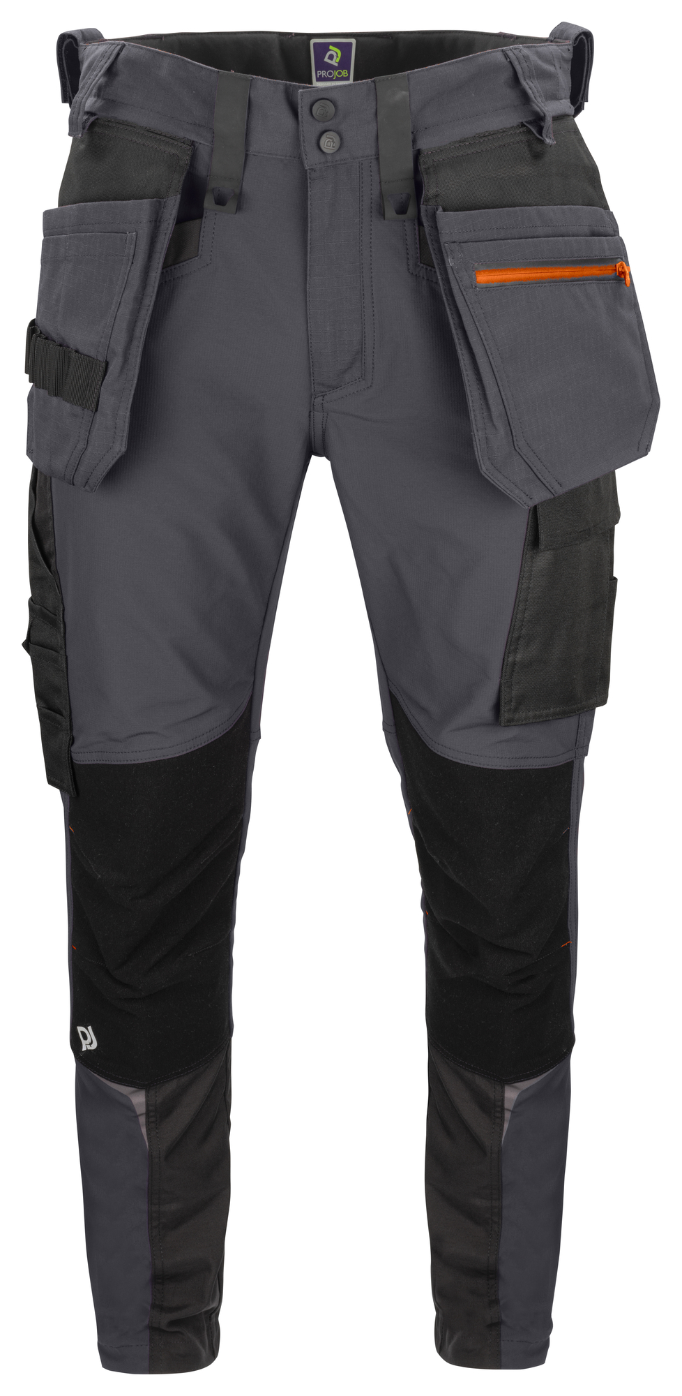 Pantalones con la máxima libertad de movimiento y confort. Ajuste moderno. Elástico en muslos y rodillas, ventilación con cremalleras a lo largo de ambas piernas y en cintura. Bolsillos izquierdos para herramientas y bolígrafos y otro para móvil con cierre de Velcro con enganche para tarjeta identificativa. En el lado derecho para cinta métrica. Dos enganches. Bolsillos extraíbles ProJob. Posibilidad de adjuntar sistema MOLLE en ambos lados. Detalles reflectantes para incrementar visibilidad. Ajustables en piernas. Rodillas pre-curvadas. bolsillos interiores para protección en rodillas. Bolsillos extraibles y final de pierna reforzados con Cordura®, rodillas reforzadas con kevlar elástico para incrementar durabilidad y confort.