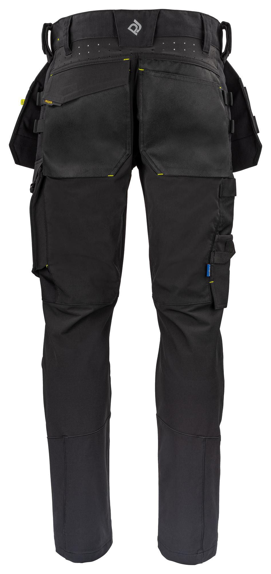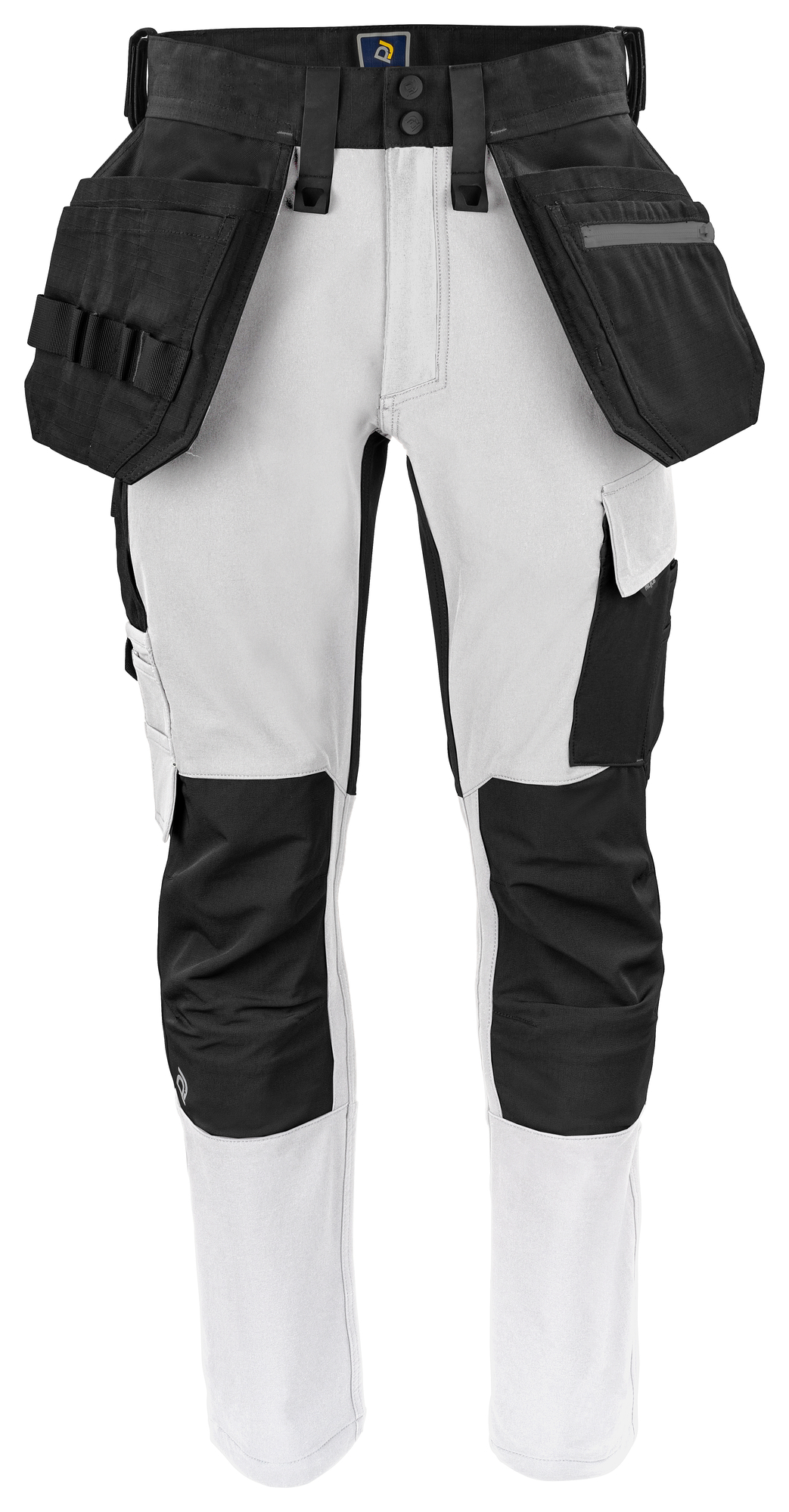 Pantalón totalmente elástico que proporciona la máxima libertad de movimiento y comodidad. Corte moderno. Los laterales de la parte superior no son elásticos para dar estabilidad al pantalón. Bolsillos tipo funda con compartimentos adicionales y refuerzo interno de Cordura®. Si se desea, se pueden quitar los bolsillos tipo funda descosiendo la costura de contraste de la parte trasera. Aberturas de ventilación en la parte posterior de la cintura. Amplios bolsillos en pierna a ambos lados. Bolsillo en la pierna izquierda para herramientas y bolígrafos, bolsillo para móvil con cierre magnético y gancho para sujetar la tarjeta de identificación. En el lado derecho bolsillo para cinta métrica y bolsillo con botón para herramientas. Trabilla más ancha en la parte trasera para evitar la presión del cinturón. Bolsillos traseros en Cordura®, uno con solapa y cierre magnético. Rodillas precurvadas. Bolsillos internos para protectores de rodillas, ajustables a dos niveles de altura. Los bolsillos y las rodillas están reforzados con Cordura® para una mayor durabilidad. Posibilidad de acoplar sistema MOLLE en ambos lados.