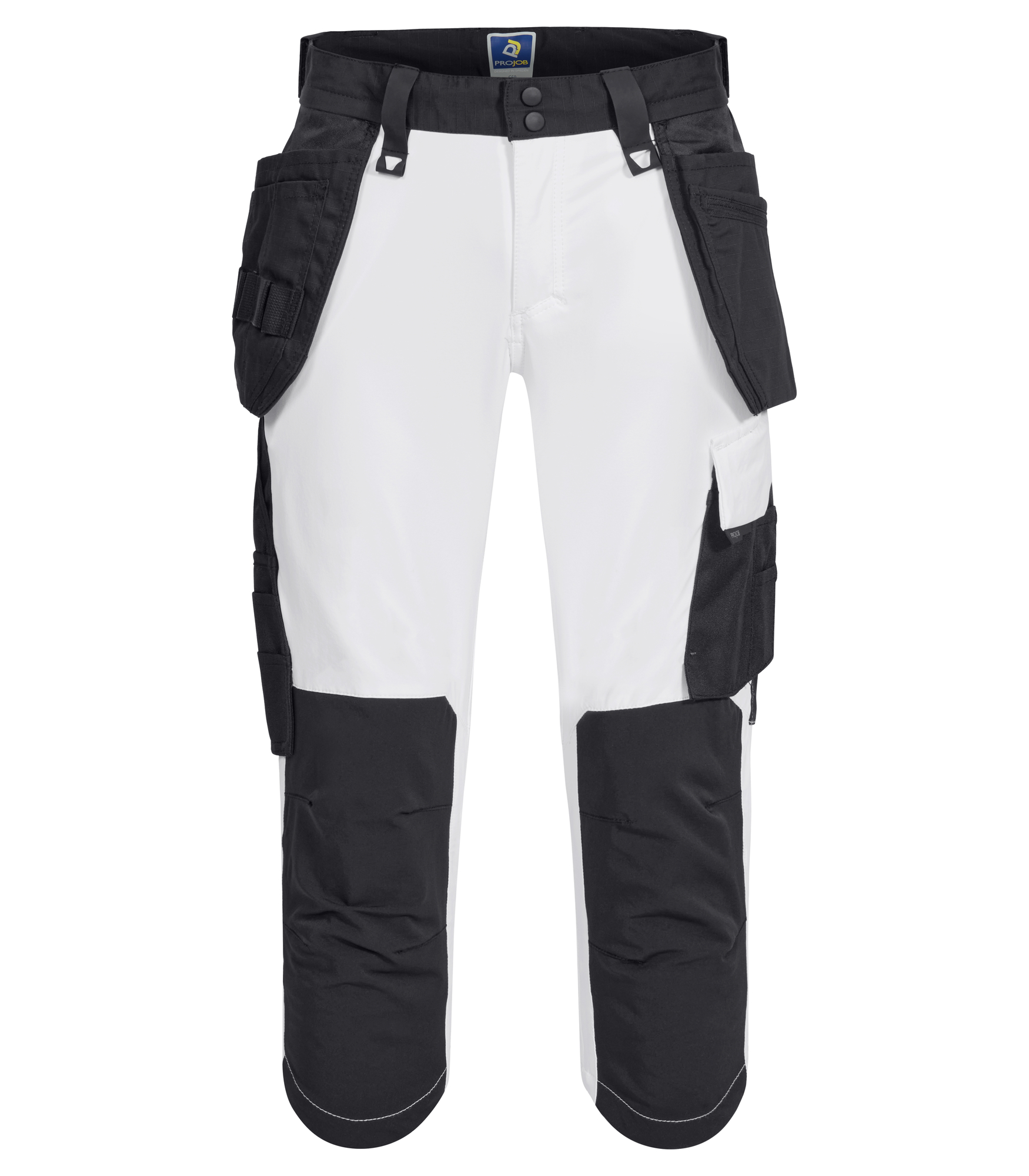 Pantalón totalmente elástico que proporciona la máxima libertad de movimiento y comodidad. Corte moderno. Los laterales de la parte superior no son elásticos para dar estabilidad al pantalón. Bolsillos tipo funda con compartimentos adicionales y refuerzo interno de Cordura®. Si se desea, se pueden quitar los bolsillos tipo funda descosiendo la costura de contraste de la parte trasera. Aberturas de ventilación en la parte posterior de la cintura. Amplios bolsillos en piernas a ambos lados. Bolsillo en la pierna izquierda para herramientas y bolígrafos, bolsillo para móvil con cierre magnético y gancho para sujetar la tarjeta de identificación. En el lado derecho bolsillo para cinta métrica y bolsillo con botón para herramientas. Trabilla más ancha en la parte trasera para evitar la presión del cinturón. Bolsillos traseros en Cordura®, uno con solapa y cierre magnético. Rodillas precurvadas. Bolsillos internos para protectores de rodillas, ajustables a dos niveles de altura. Los bolsillos y las rodillas están reforzados con Cordura® para una mayor durabilidad. Posibilidad de acoplar sistema MOLLE en ambos lados.