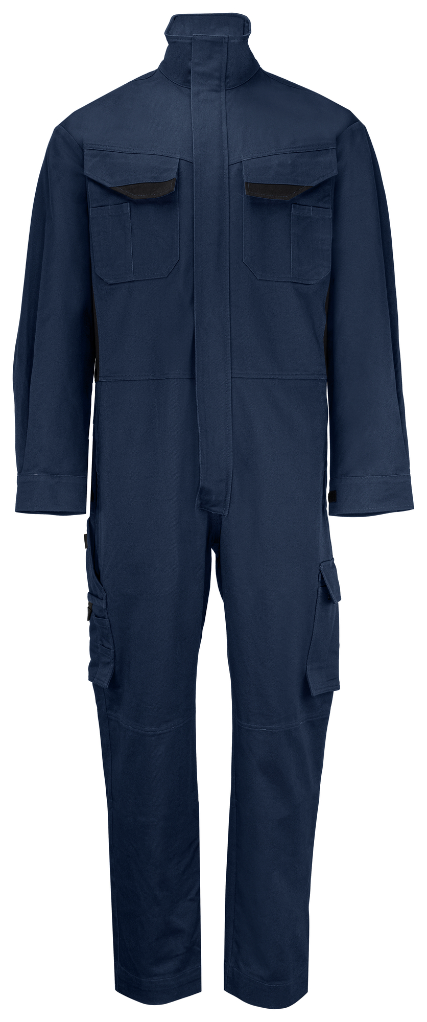 Mono con cremallera bidireccional en la parte delantera, cubierta con solapa. Bolsillos frontales con cierre de velcro a ambos lados. Bolsillos laterales profundos a ambos lados, también aberturas para acceder a los bolsillos de los pantalones debajo del mono. Bolsillos frontales a ambos lados para bolígrafos, papeles, etc. El bolsillo izquierdo también con gancho para sujetar la tarjeta de identificación, se cierra con velcro. Bolsillos en pierna, en el lado izquierdo un amplio bolsillo con solapa y cierre de velcro y bolsillo interior para móvil. En el lado derecho bolsillos para bolígrafos, papel y cinta métrica. Bolsillos traseros con solapa y cierre de velcro. Cintura ajustable con cordón interior y puños ajustables con velcro. Bolsillos internos para protectores de rodilla. La longitud de la pierna puede ampliarse 5 cm.