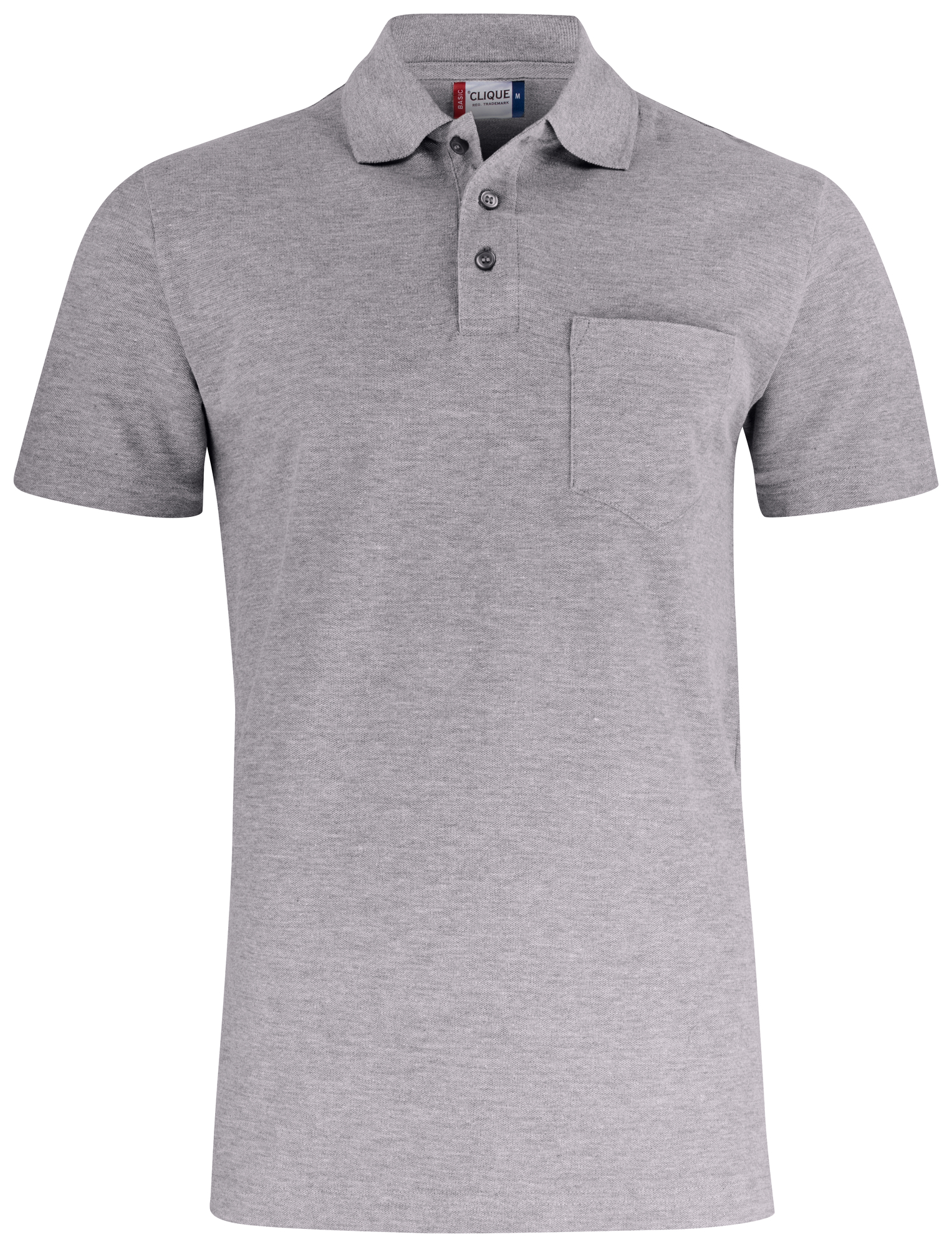 Polo piqué unisex de manga corta con bolsillo frontal en 100% algodón ring spun, Tres botones a tono, aberturas laterales y tapeta reforzada. Tejido pre-encogido y con tratamiento enzimático.