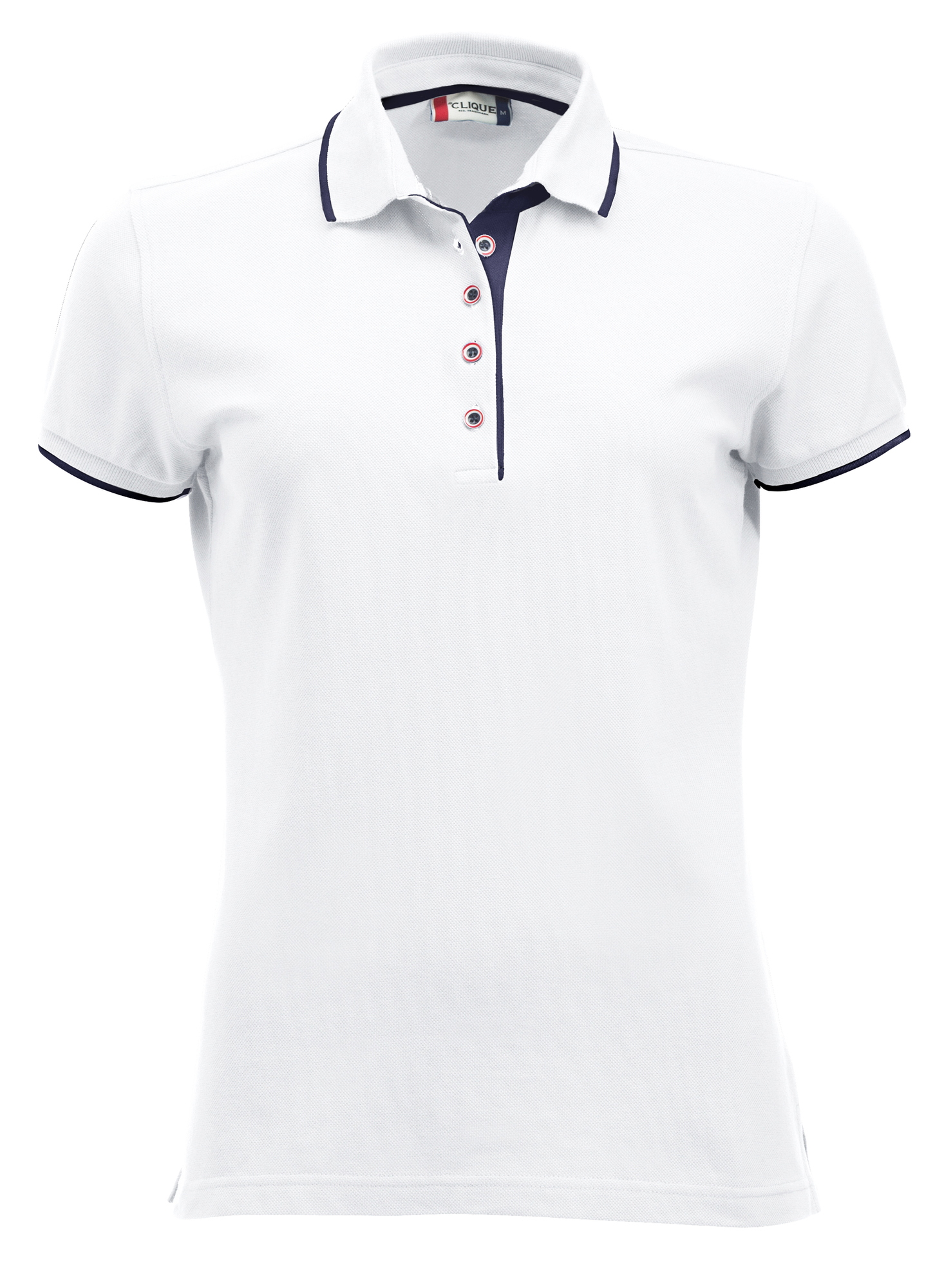 Polo piqué de manga corta con contraste a color en botones, tapeta y aberturas laterales. Tapeta con tres botones, 5 en la versión femenina. Raya a contraste en mangas y cuello. Composición: 100% Algodón ring spun