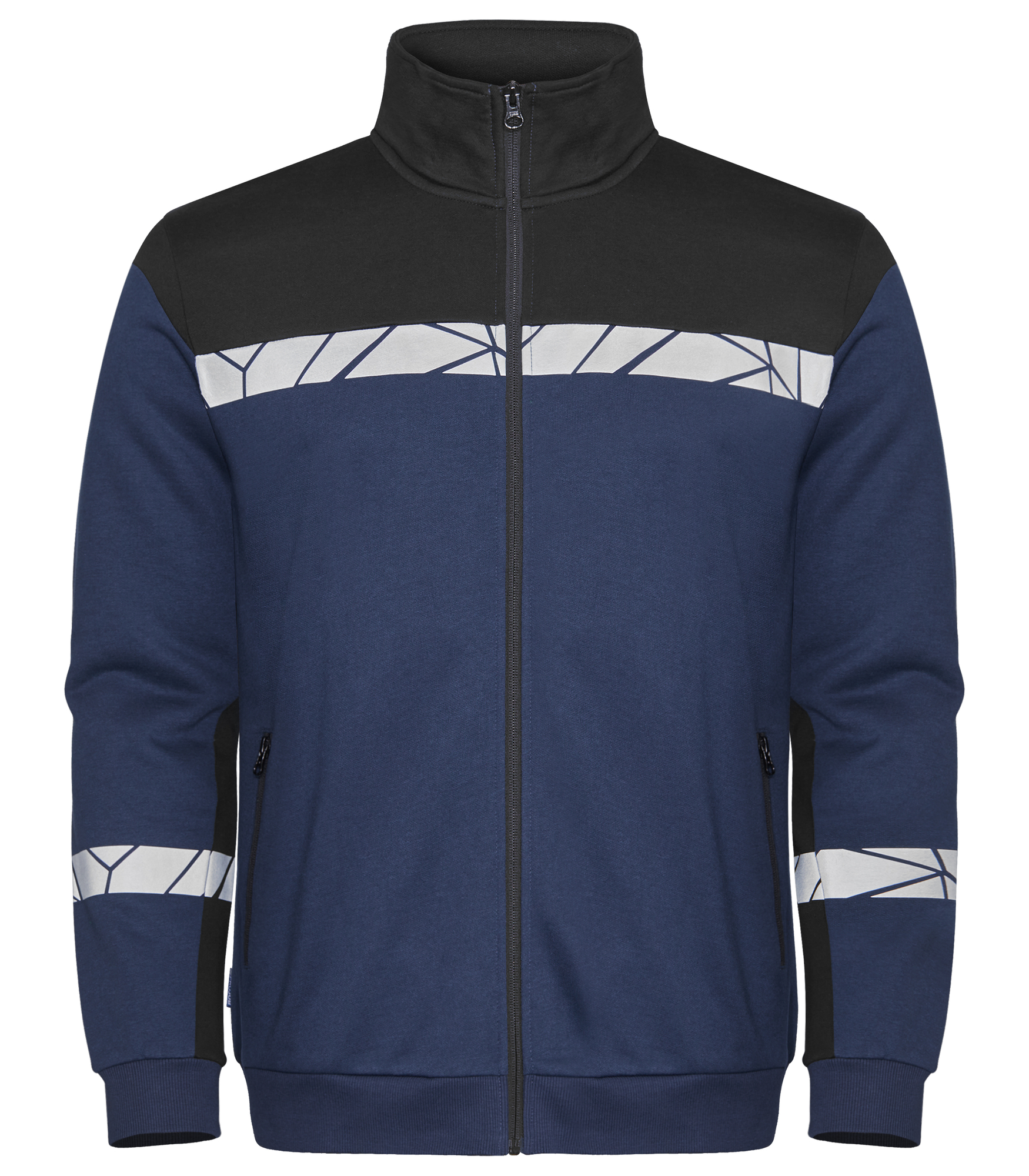 Sudadera con cremallera completa en la parte delantera. Interior afelpado para una sensación agradable y suave. Bolsillos a ambos lados con cierre de cremallera. Cinta de contraste en el cuello. Canalé 2×2 en los puños y en la parte inferior de la sudadera. Bolsillo para chip de lavandería en la costura lateral izquierda interior.