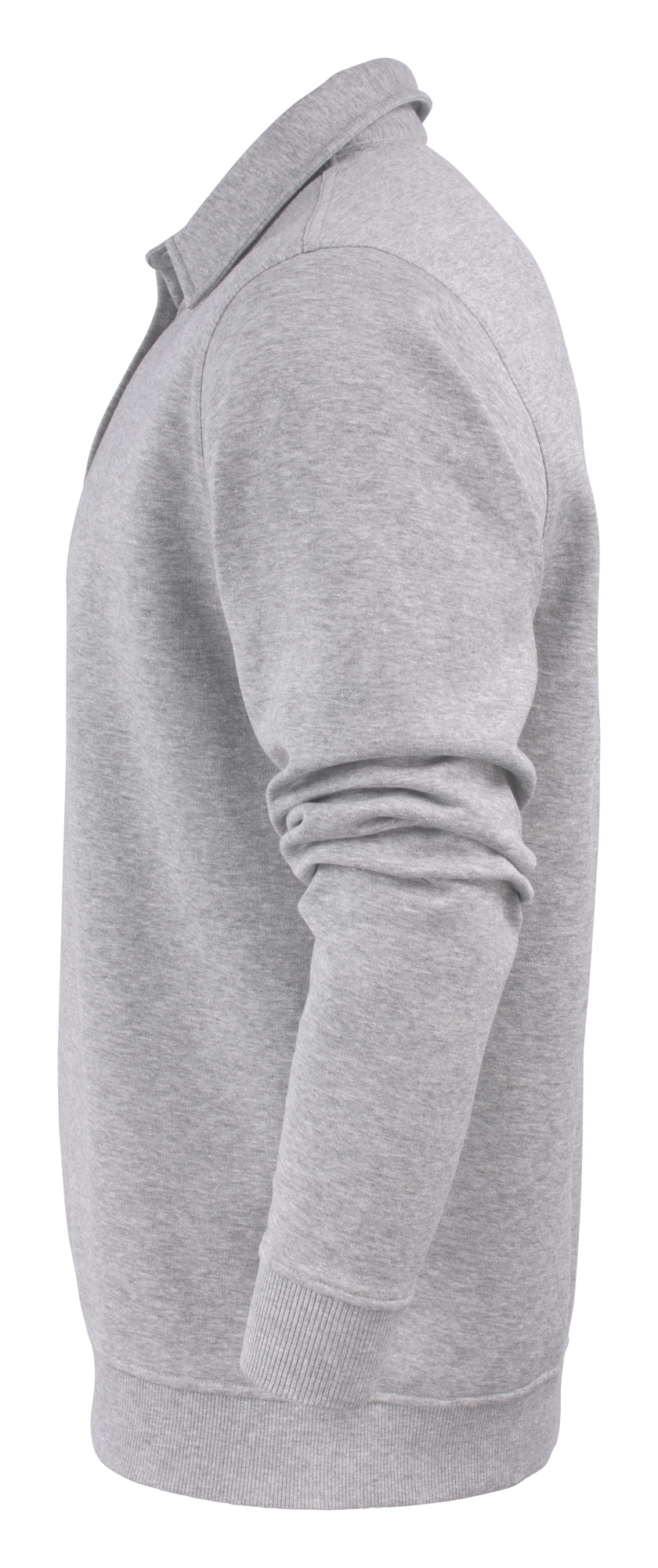 Sudadera con cuello y tapeta. Canalé 2×2 de elastano en puños y cintura. Composición: 60% Poliéster 40% Algodón, 280 g/m² (120 gris marengo 85% Algodón, 15% Viscosa)