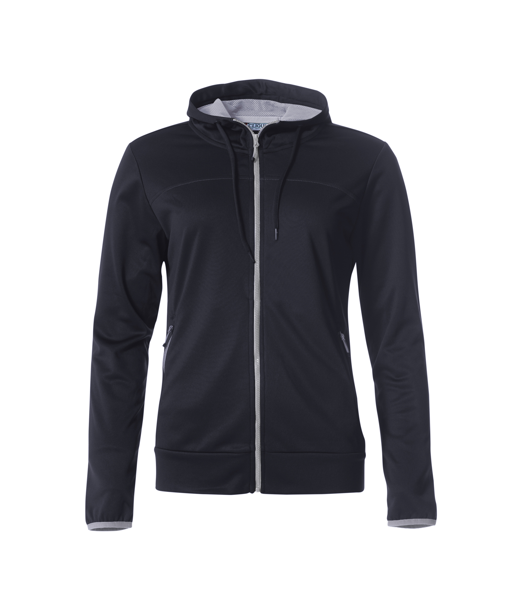 Sudadera deportiva con capucha en cómodo y elástico poliéster. Capucha con forro de malla y cordón de ajuste. Bolsillos frontales con cremallera y bolsillos interiores. Bolsillos con solución para auriculares. Composición: 100% poliéster