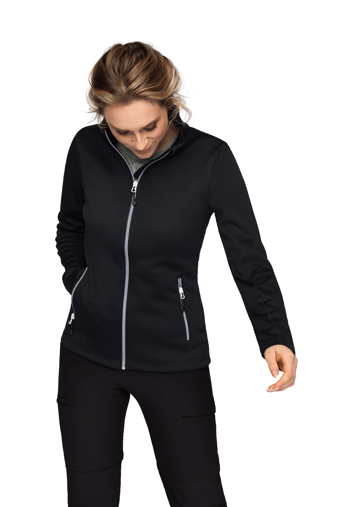 Chaqueta Air Layer en material elástico ideal para estar activo. Bolsillos frontales, cremalleras a contraste y costuras planas. Composición: 100% Poliéster, spun dyed, 280 g/m²