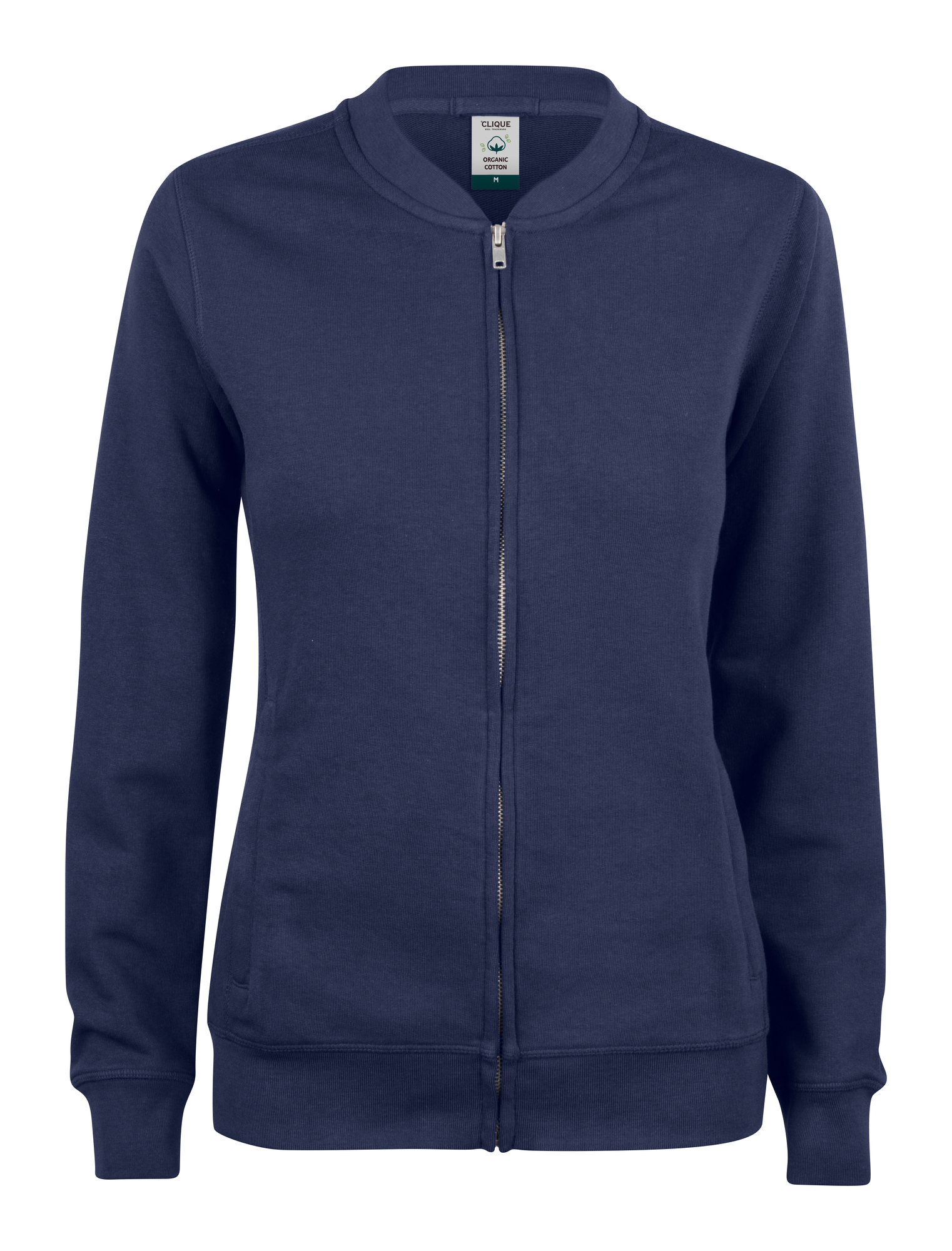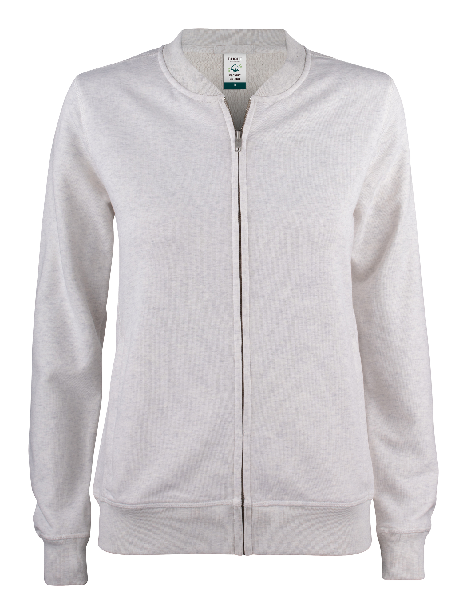 Sudadera cárdigan cremallera entera en algodón orgánico y poliéster reciclado. Cremallera YKK con acabado vintage. Dos bolsillos frontales con cremallera YKK y solución para auriculares. CVC French Terry, cuello herringbone y canalé en cintura y puños. Canalé elástico 1×1.