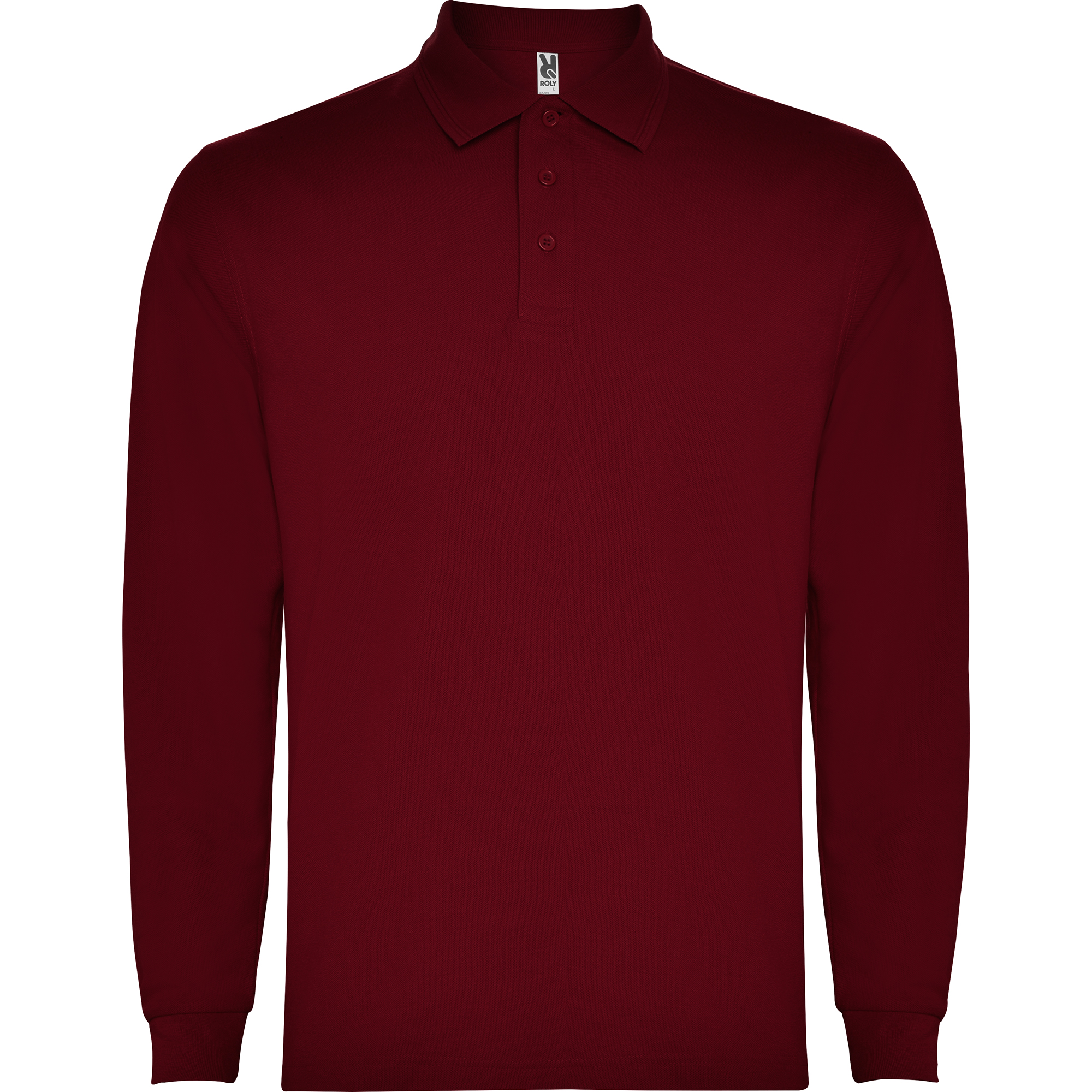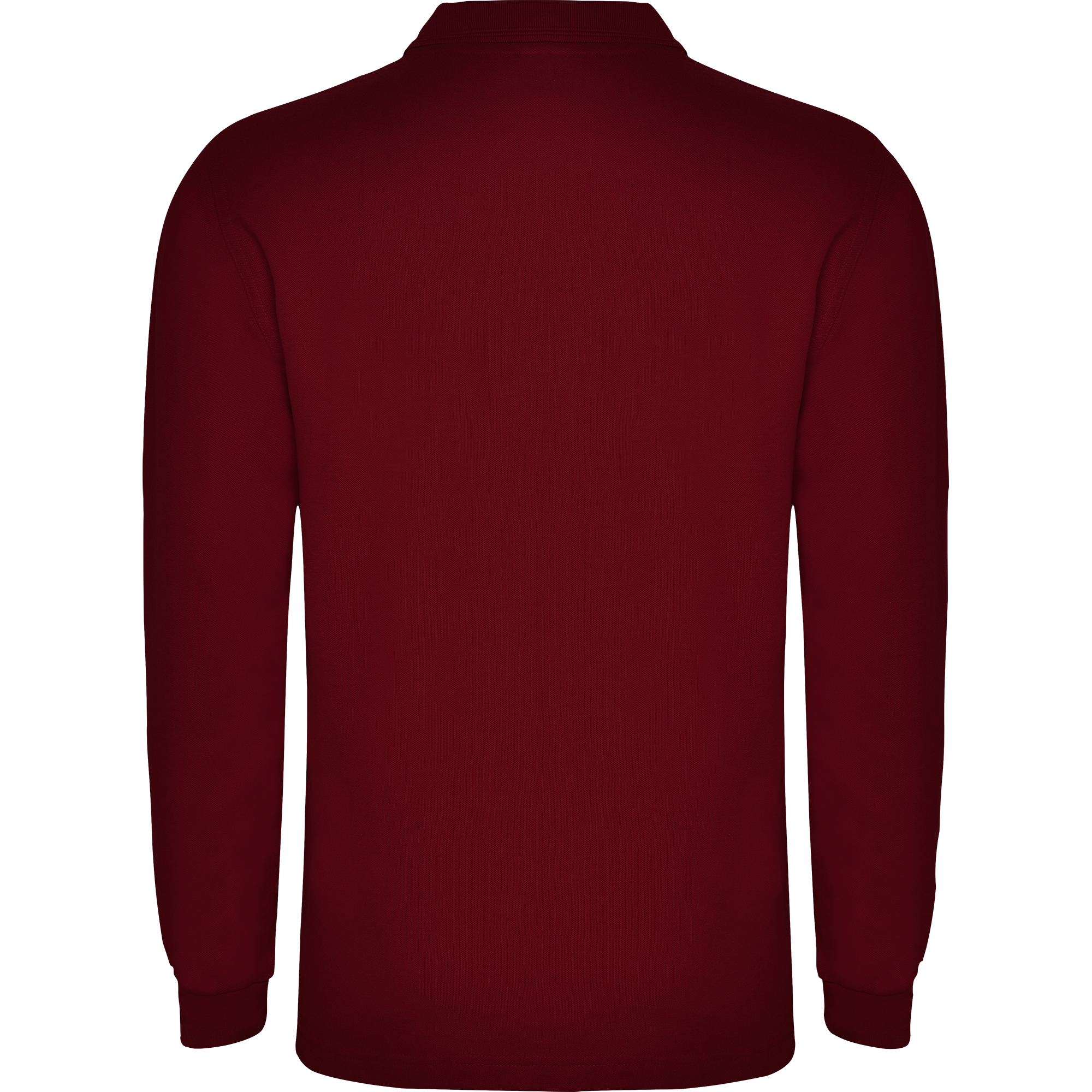 Polo de manga larga. Punto piqué. Cuello y puños tejidos 1×1. Tapeta de 3 botones. Cubrecosturas en cuello del mismo tejido. Aperturas laterales en bajo. Bolsillo opcional. Composición: 65% poliéster / 35% algodón, punto pique, 220 g/m². Observaciones: *Color marino 55 disponible en 3XL.
