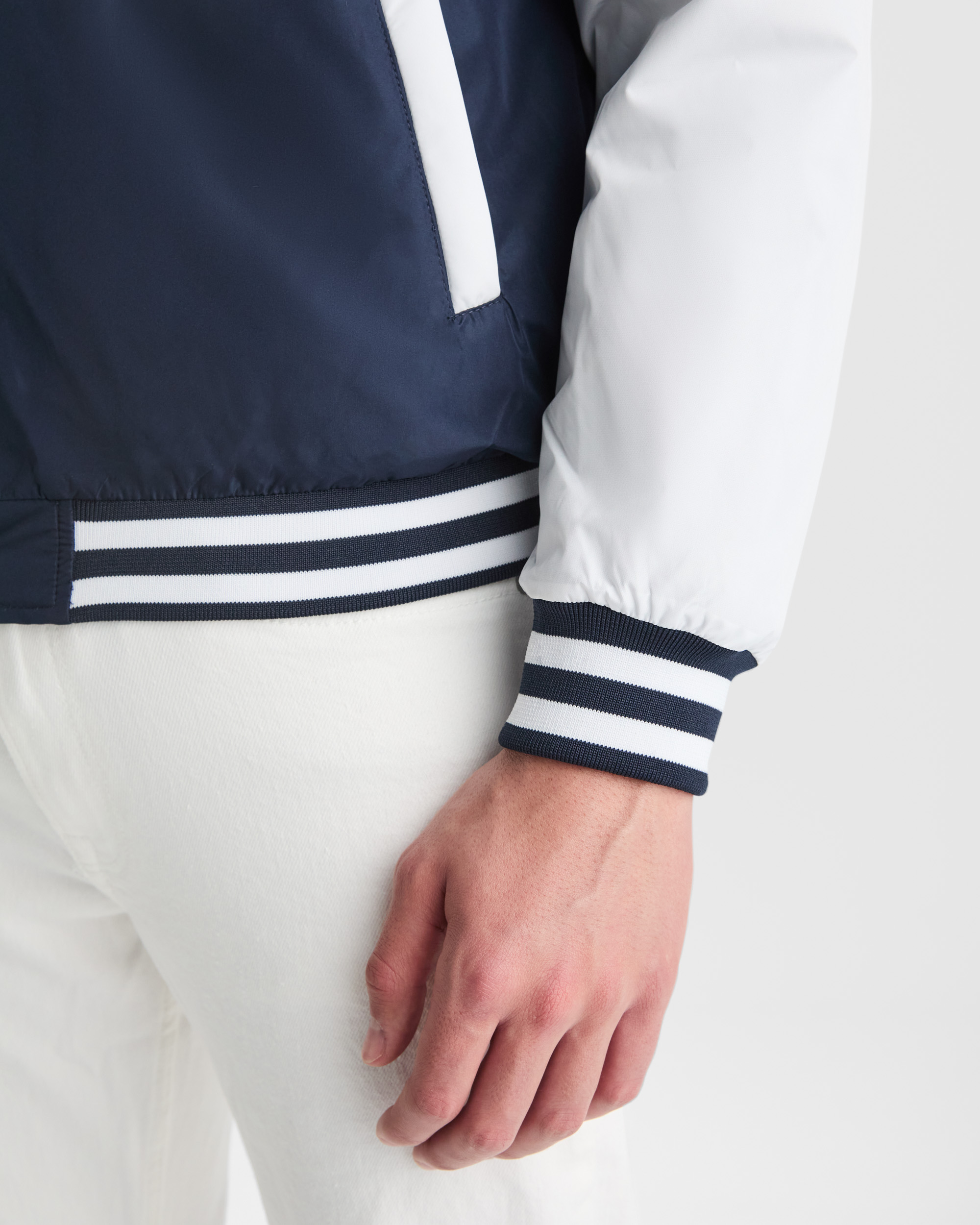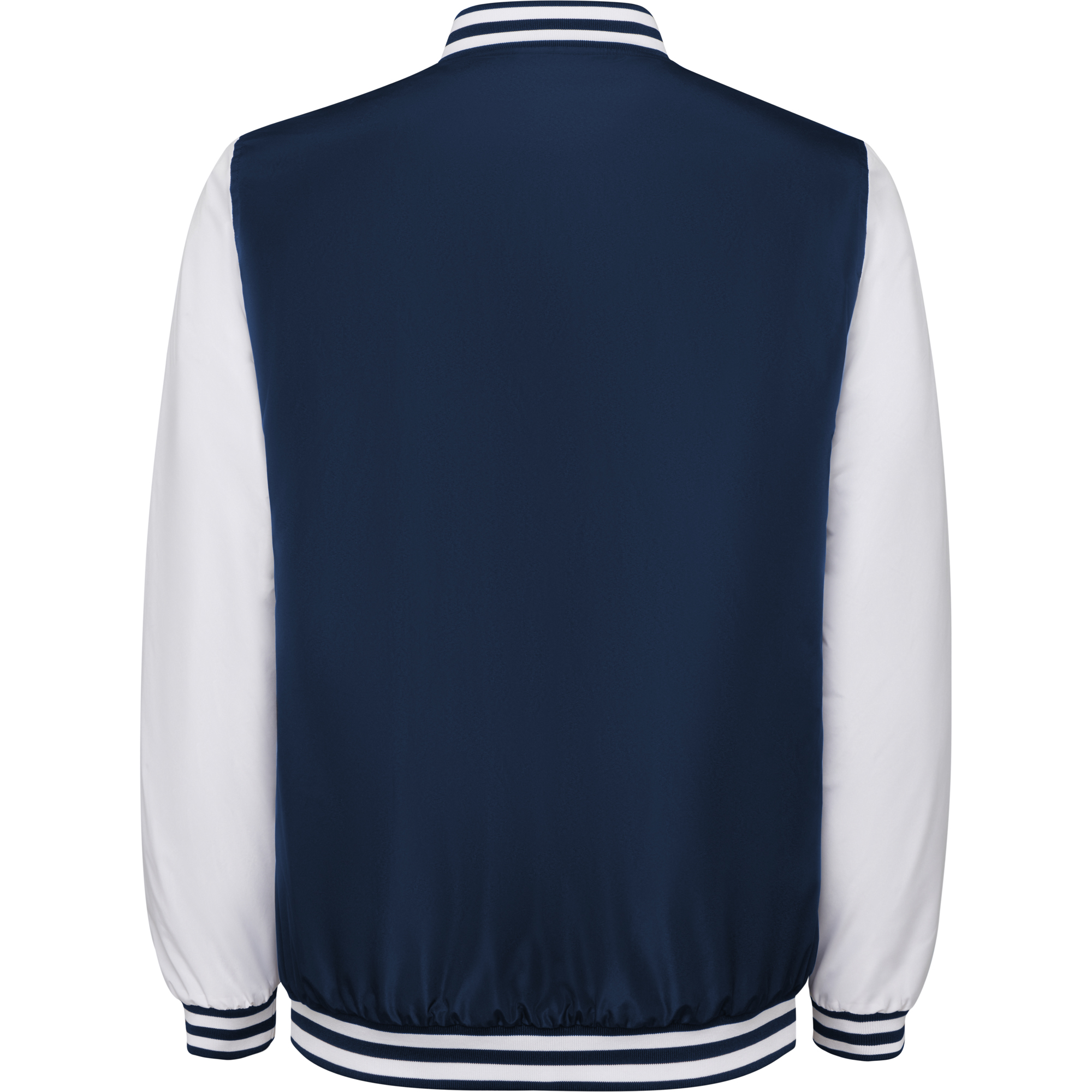 Chaqueta unisex combinada a dos colores. Ligeramente acolchada. Bolsillos laterales con cremallera y ribete del mismo tejido a contraste. Cuello, puños y bajo en canalé 1×1 con líneas a contraste combinado con el cuerpo. Botones a presión con acabado en plástico a contraste. Acceso para reprocesos en la espalda. Composición: Exterior: 100% Poliéster, tafetán