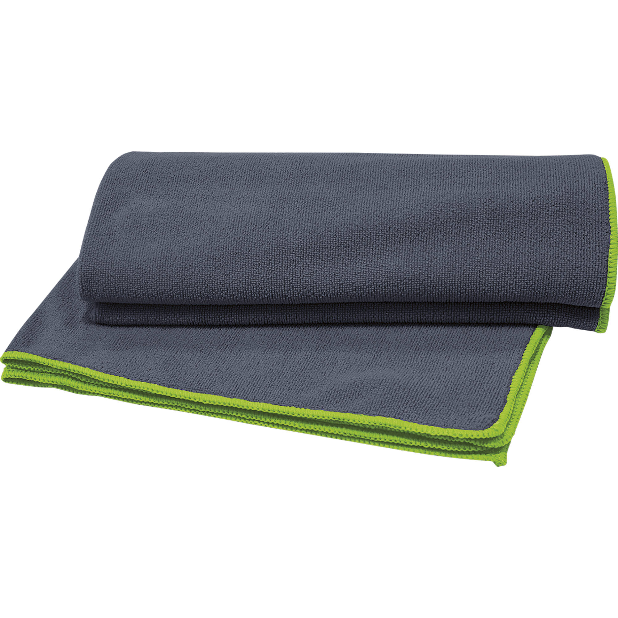 Toalla de baño y playa, remallado con filamento de poliéster a tres hilos mismo tono, excepto en el color plomo oscuro (ref. 46) que el remallado es en amarillo flúor (ref. 221). Adorno elástico para plegado. Este producto está disponible en dos tallas: S (38x68cm) y M (60x145cm).
