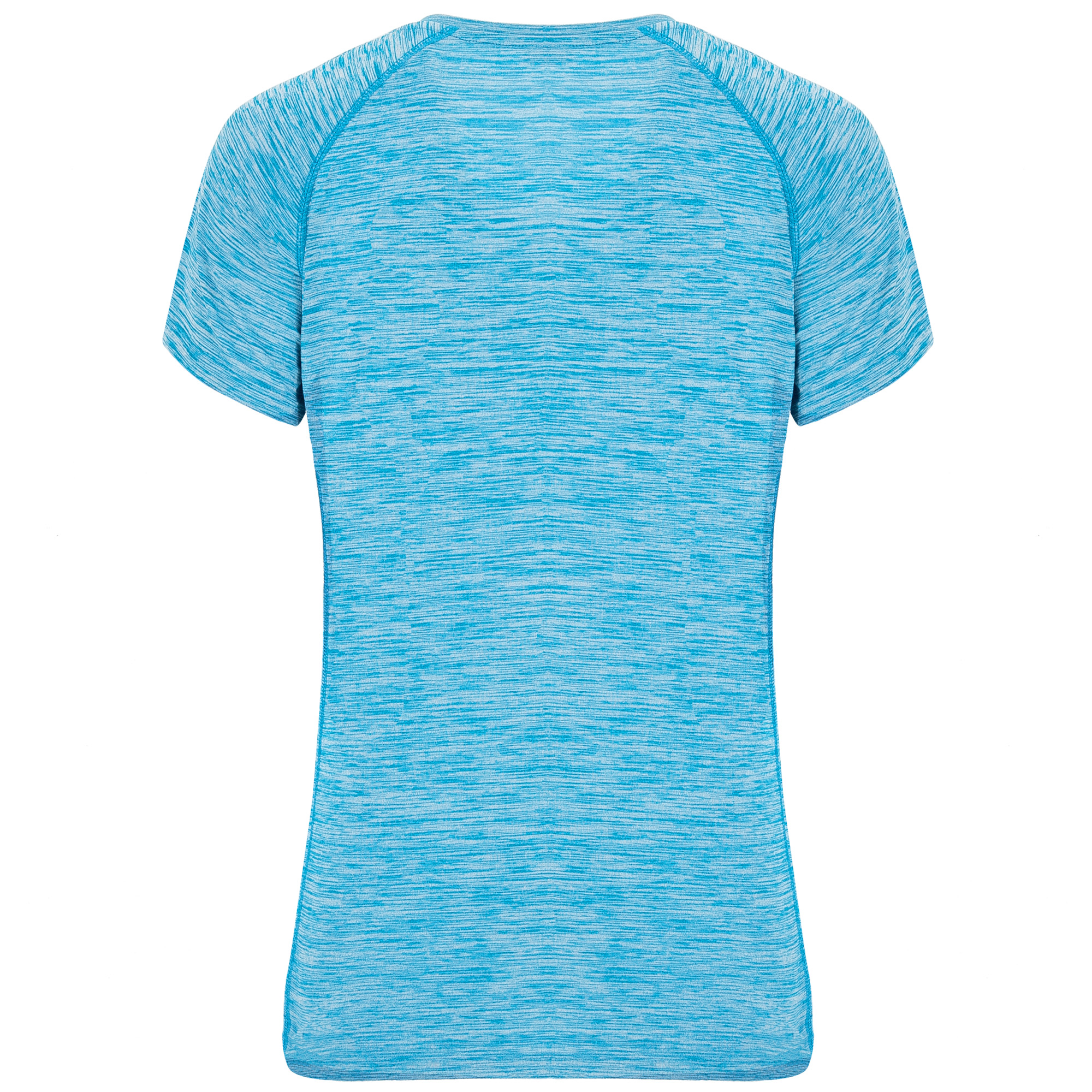 Camiseta técnica manga ranglán entallada transpirable. Paneles laterales con costuras anti roce. Cuello redondo y cubrecosturas del mismo tejido al tono.