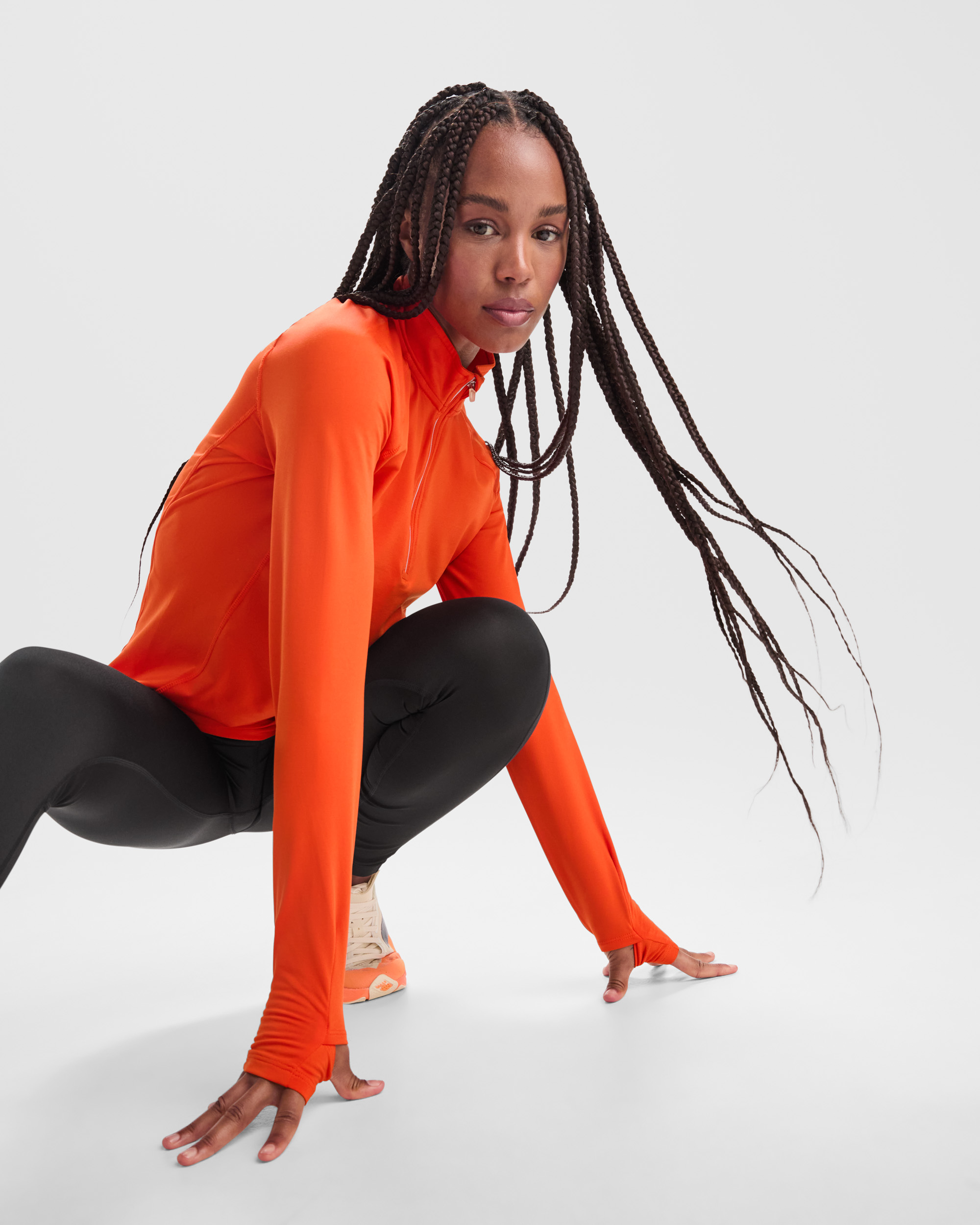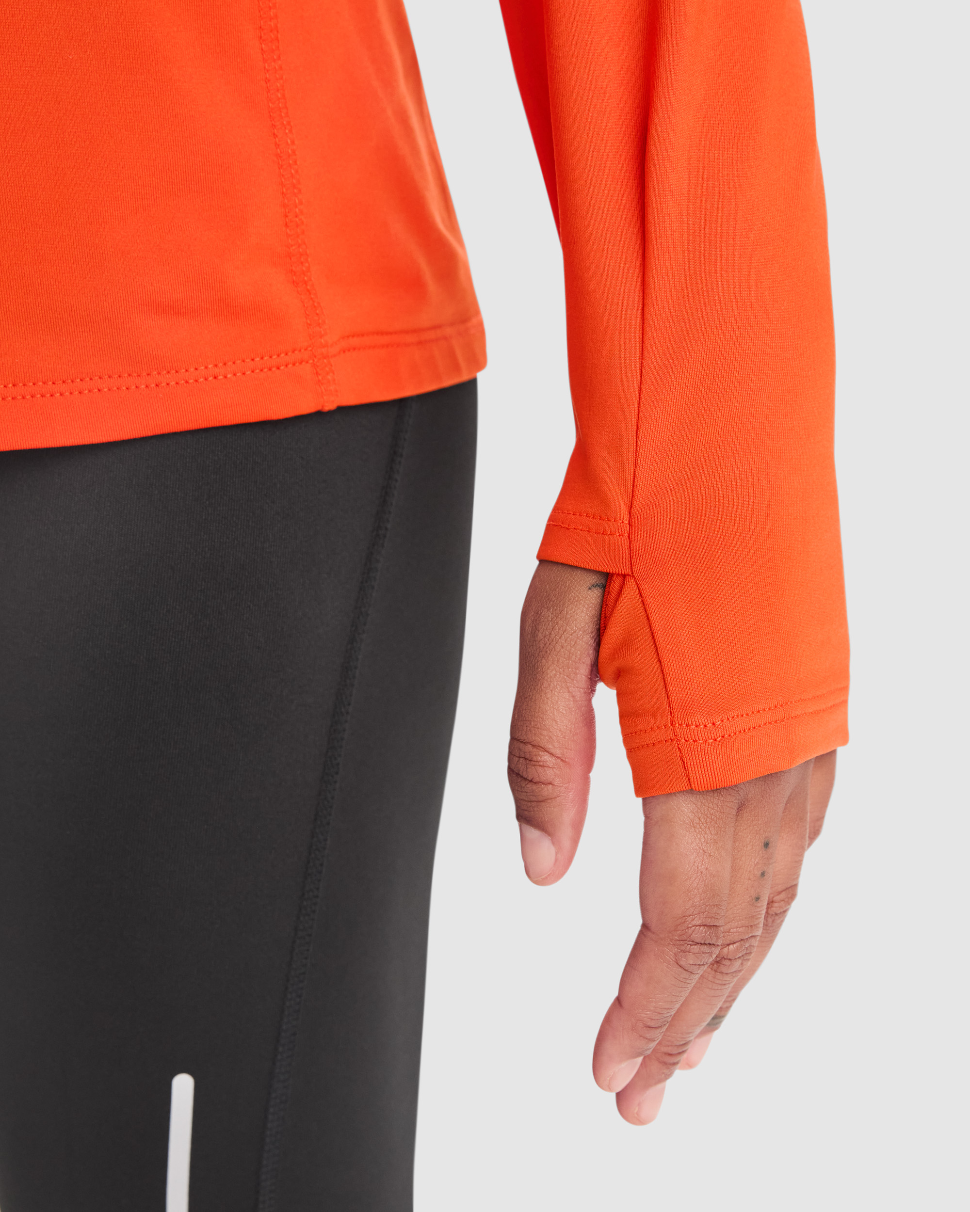 Sudadera técnica perchada manga ranglán entallada y media cremallera invertida con detalle reflectante. Cubrecosturas en cuello interno. Puños con ojal para pulgar. Detalles reflectantes en la espalda. Faldón trasero. Certificado GRS.Composición: 88% Poliéster reciclado / 12% Elastano, 200 g/m²Observaciones: *Duo concept *Etiqueta removible. *Stretch *Transpirable
