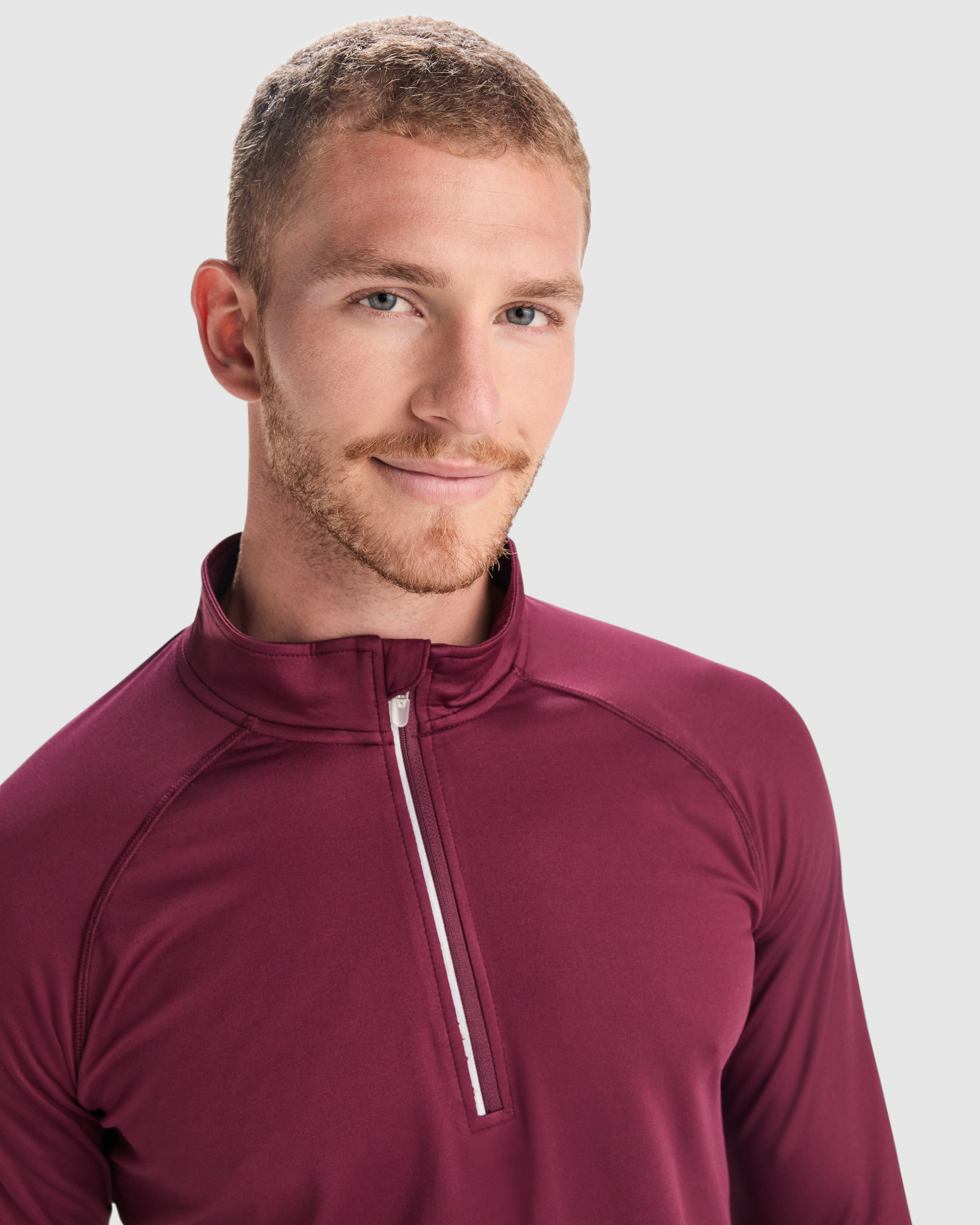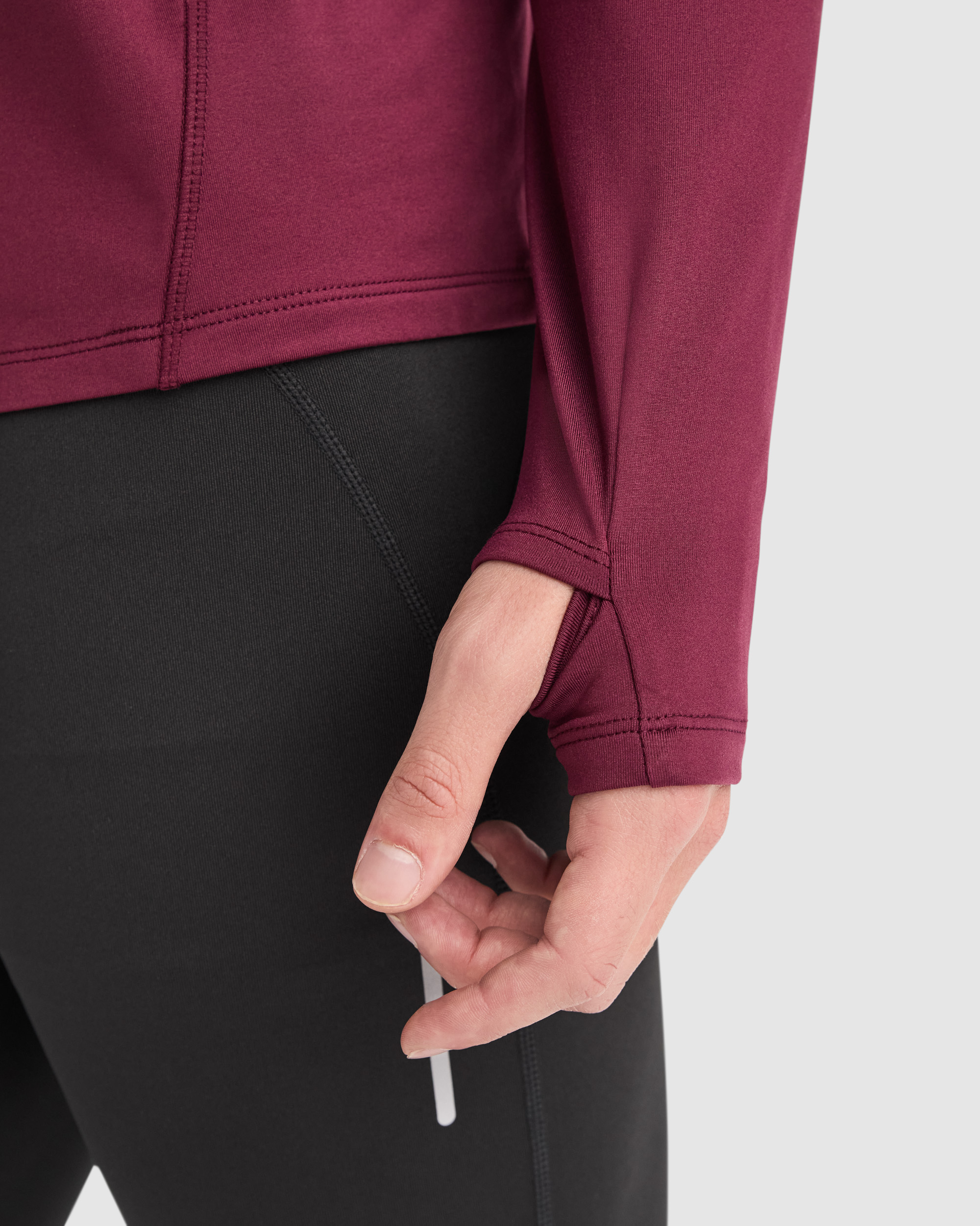 Sudadera técnica perchada manga ranglán y media cremallera invertida con detalle reflectante. Cubrecosturas en cuello interno. Puños con ojal para pulgar. Detalles reflectantes en la espalda. Faldón trasero. Certificado GRS. Composición: 88% Poliéster reciclado / 12% Elastano, 200 g/m² Observaciones: * Duo concept