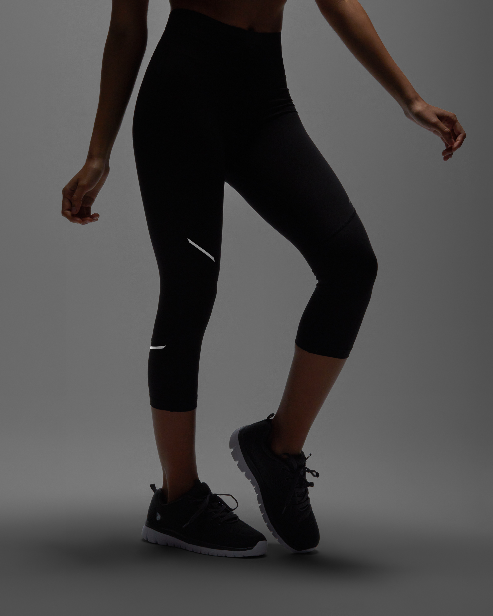 Malla media pierna running mujer transpirable. Cinturilla engomada con cordón cruzado ajustable. Detalles reflectantes. Mini bolsillo trasero.Composición: 88% poliéster interlock / 12% elastano, 220 g/m².Observaciones: *Etiqueta removible. *Tejido técnico. *Modelo transpirable. *Dúo concept.