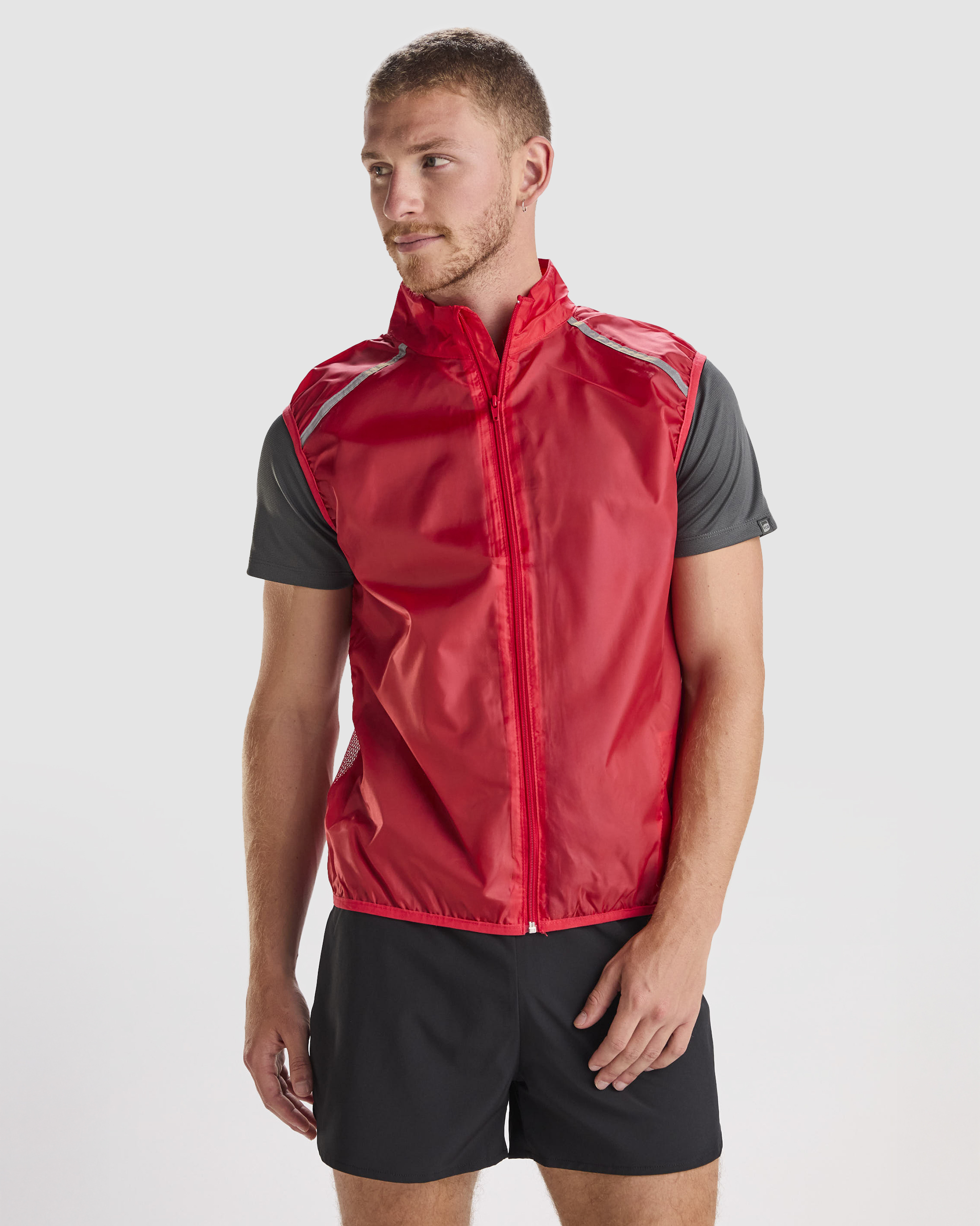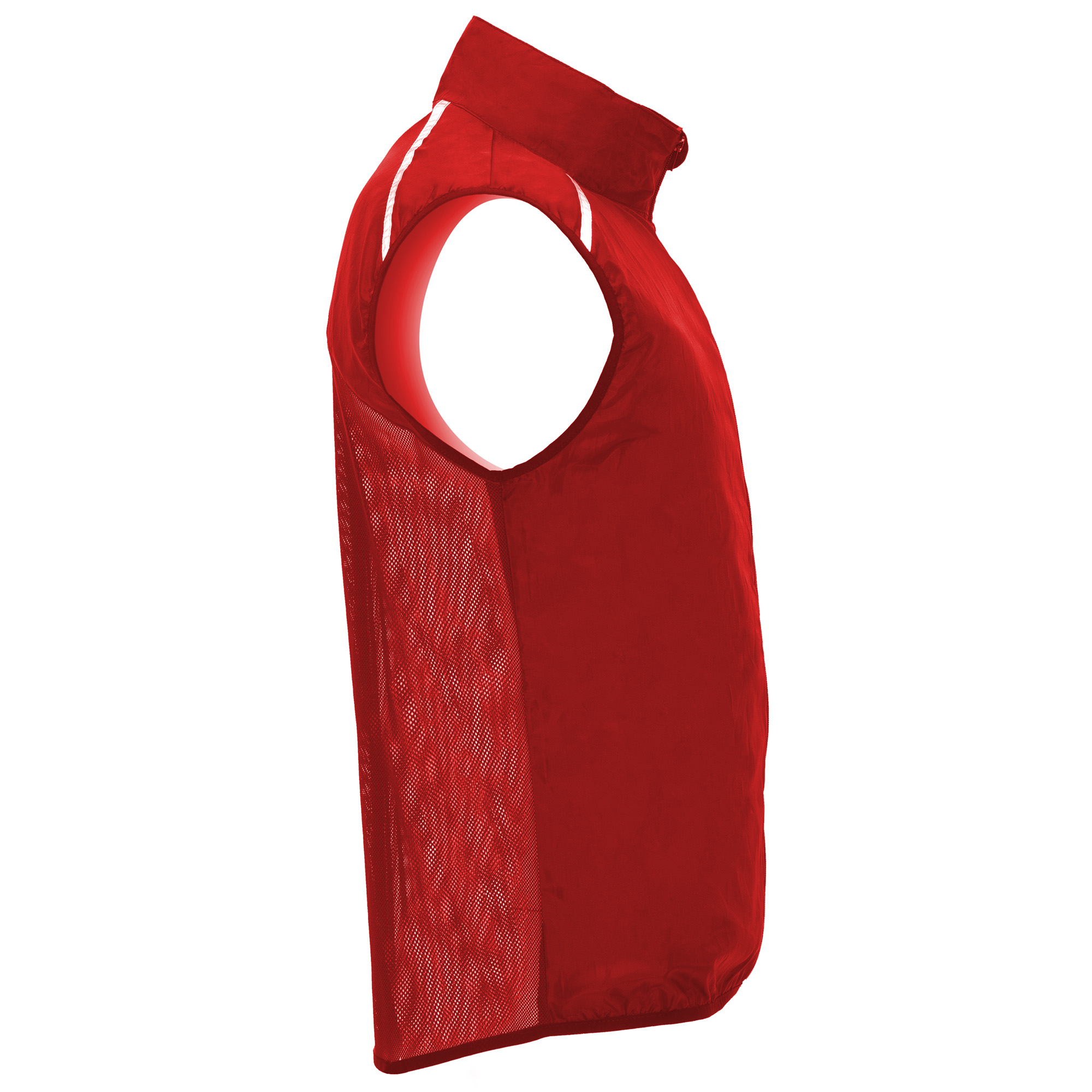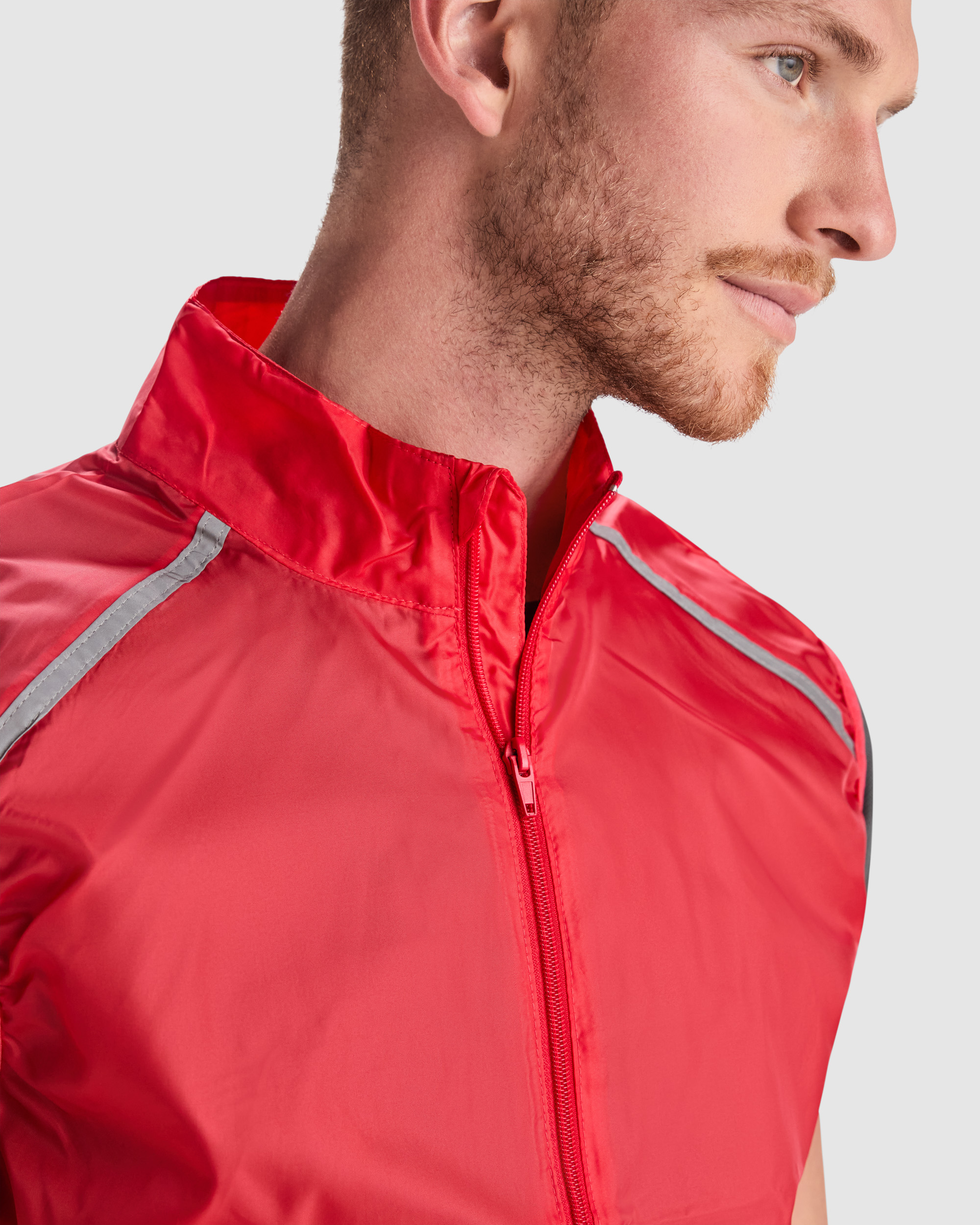 Chaleco cortavientos ultraligero. Cremallera frontal al tono. Protector de barbilla. Espalda en tejido de malla transpirable. Bandas reflectantes en el frontal y en espalda de los hombros como puntos de visibilidad aumentada. Sisas y bajo con ribete elástico al tono. Bolsillo lateral izquierdo para plegado. Composición: Tejido delantero: 100% poliéster.