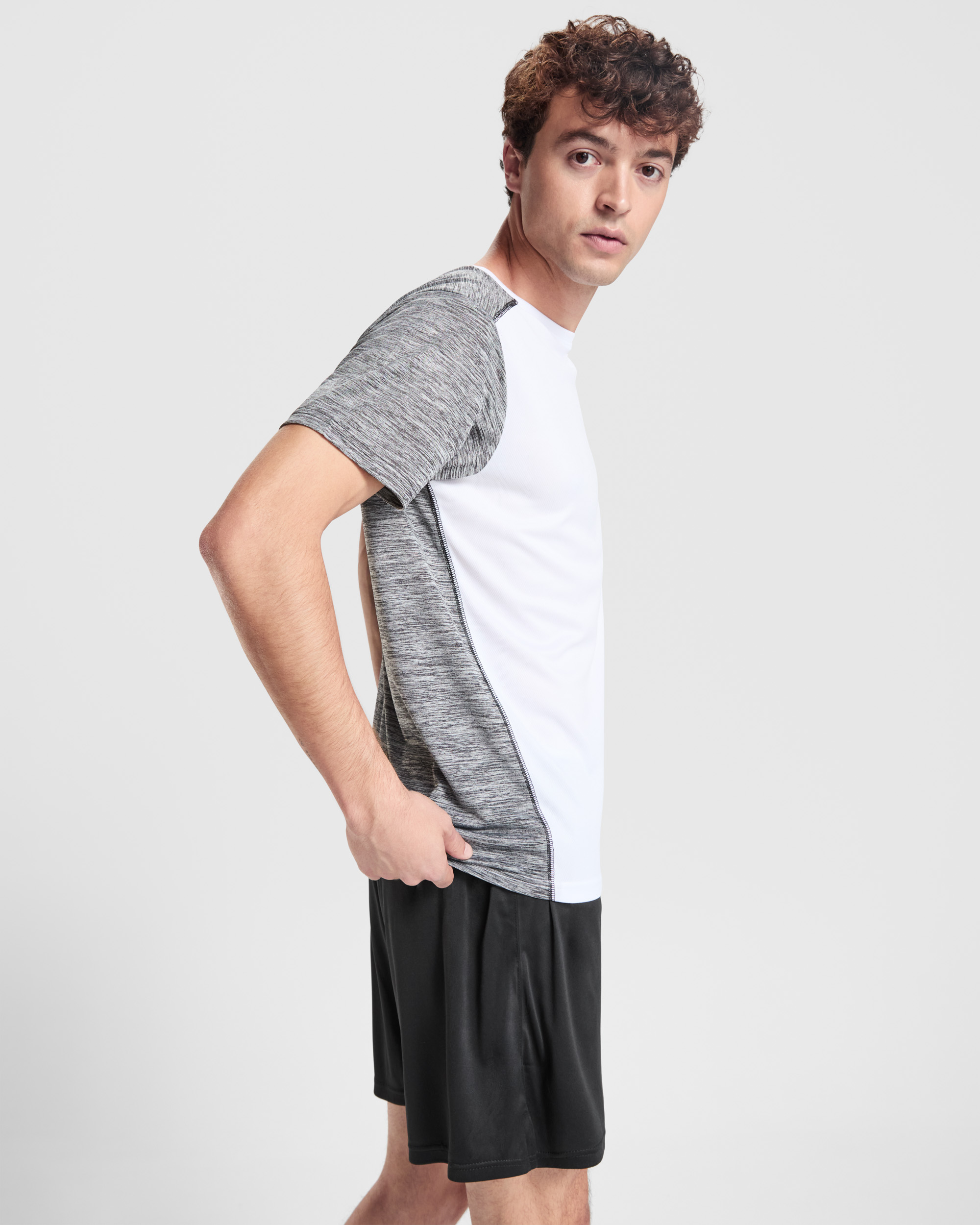 Camiseta técnica manga corta transpirable. Combinación de tejidos y colores. Costuras antirroce. Cuello redondo y cubrecosturas del mismo tejido al tono del frontal. Composición: Tejido delantero: 100% poliéster bird´s eye.