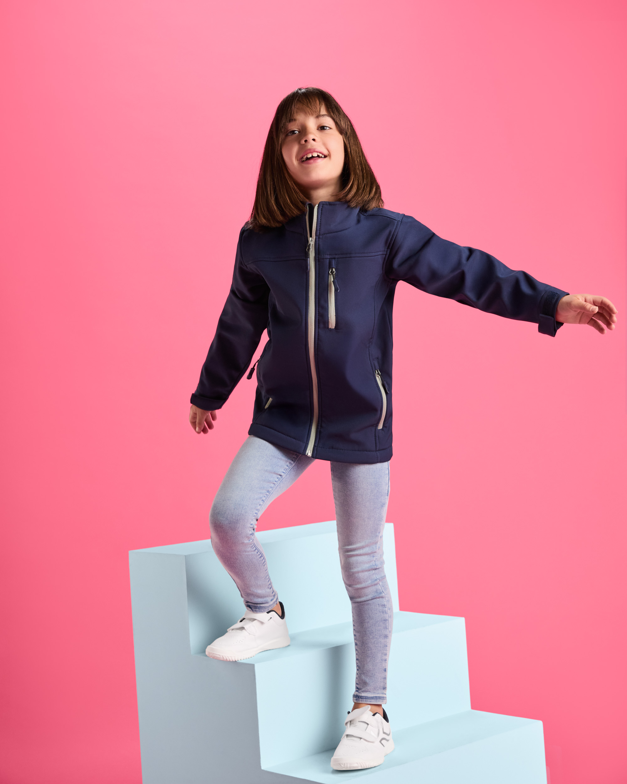 Chaqueta softshell de 2 capas con cremallera frontal invertida a contraste. Repelente al agua y resistente al viento. Interior en tejido micropolar. Dos bolsillos laterales y uno en pecho izquierdo con cremalleras invertidas a contraste. Protector de barbilla del mismo tejido invertido. Ajustadores laterales en el interior en tallas de adulto. Composición: Dos capas.