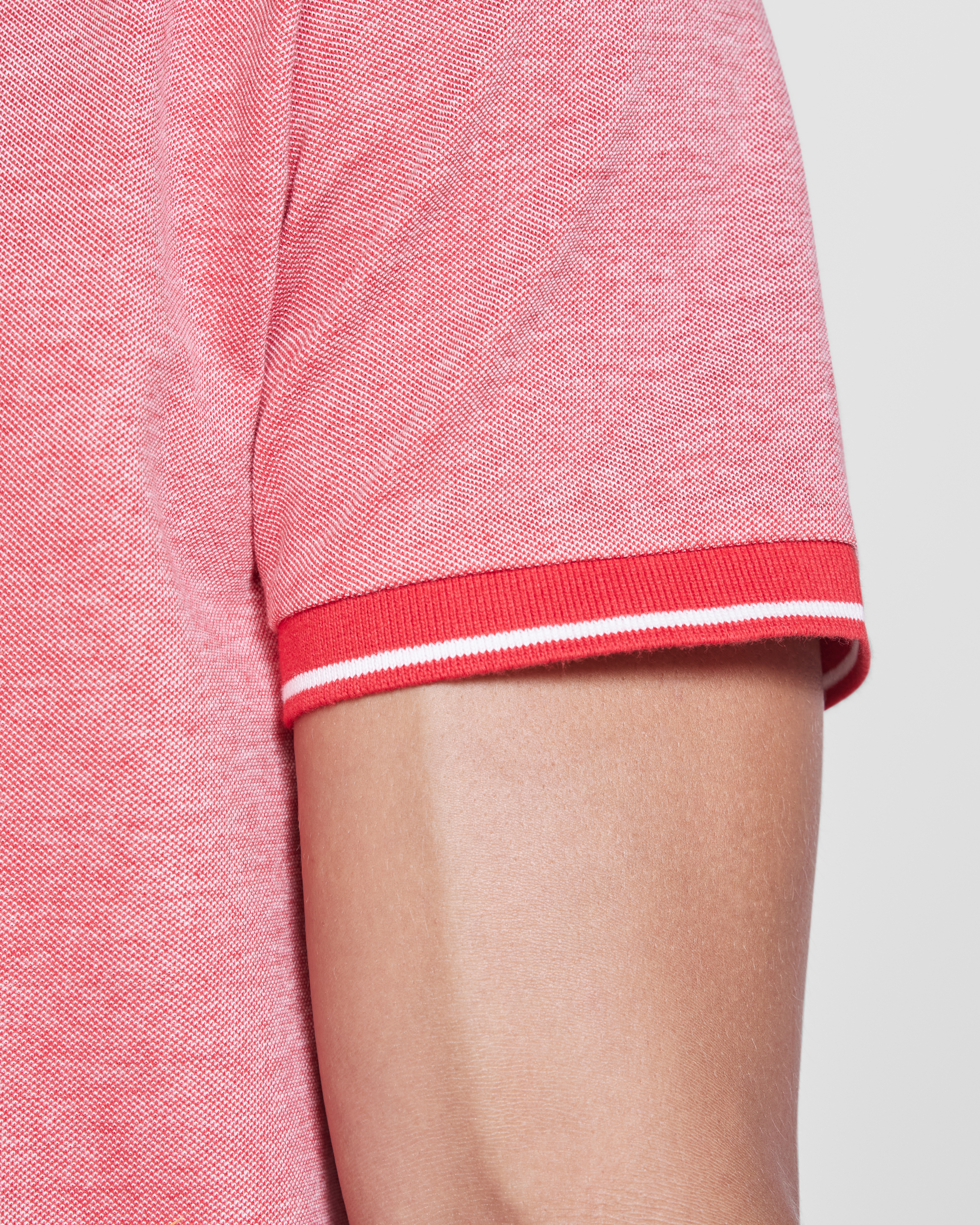 Polo Vigoré de manga corta. Cuello y bocamangas en color solido con canalé 1×1 y detalle decorativo a contraste. Tapeta interior con cinta decorativa a contraste y tres botones. Bajo con apertura lateral reforzada y cinta decorativa. Espalda ligeramente más larga que el delantero. Composición: 100% algodón, punto piqué, 200 g/m². Observaciones: *Etiqueta removible.