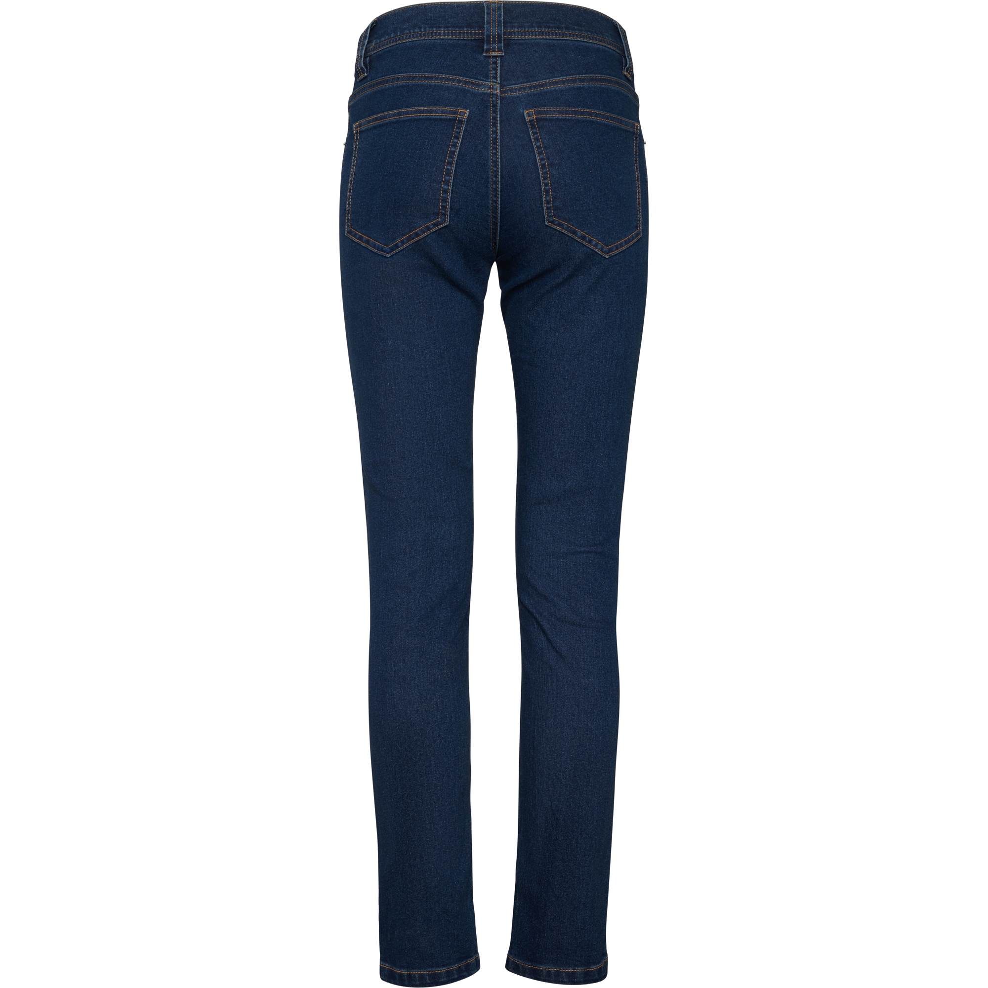 Pantalón vaquero de mujer de corte regular. Tiro medio. 5 trabillas. Bragueta con cremallera y botón metálico. Dos bolsillos laterales y uno portamonedas en lado derecho. Dos bolsillos traseros angulados. Composición: 78% algodón / 20% poliéster / 2% elastano, 370 g/m².