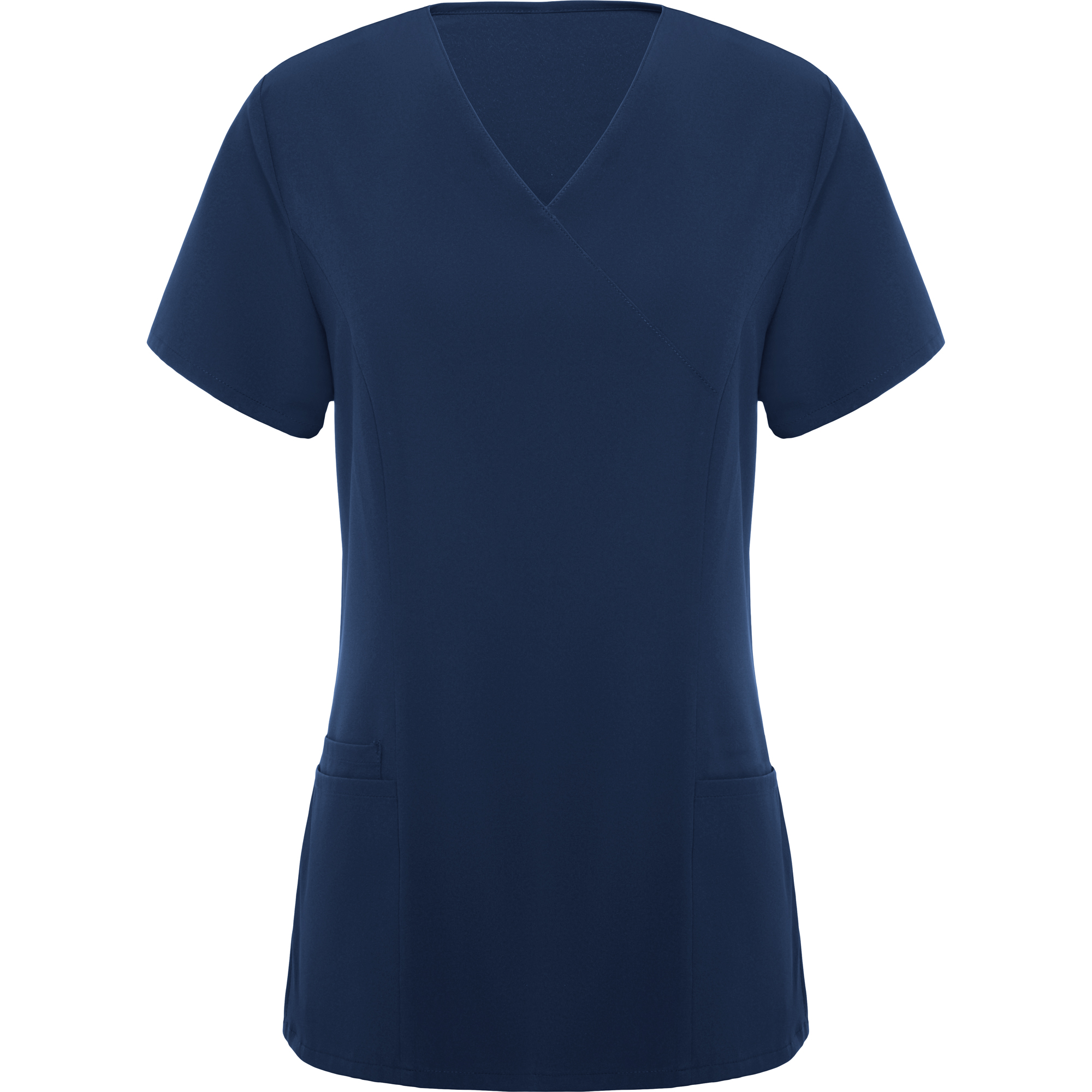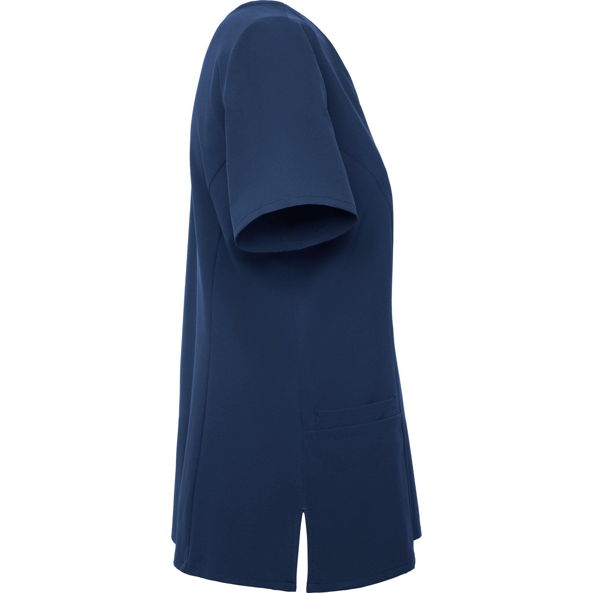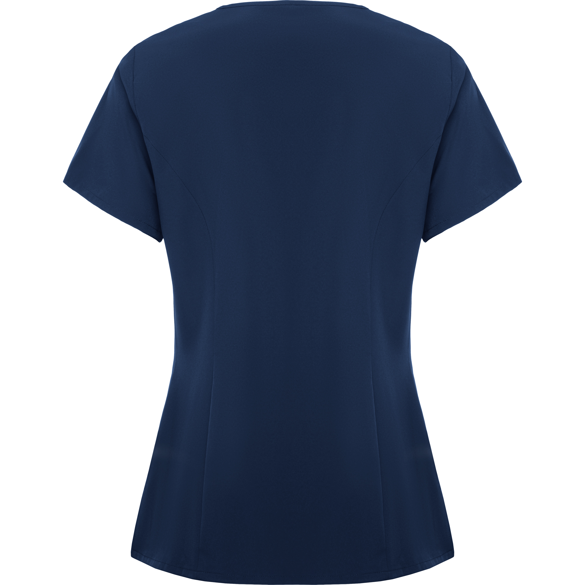 Casaca sanitaria de manga corta con cintura ligeramente ajustada.