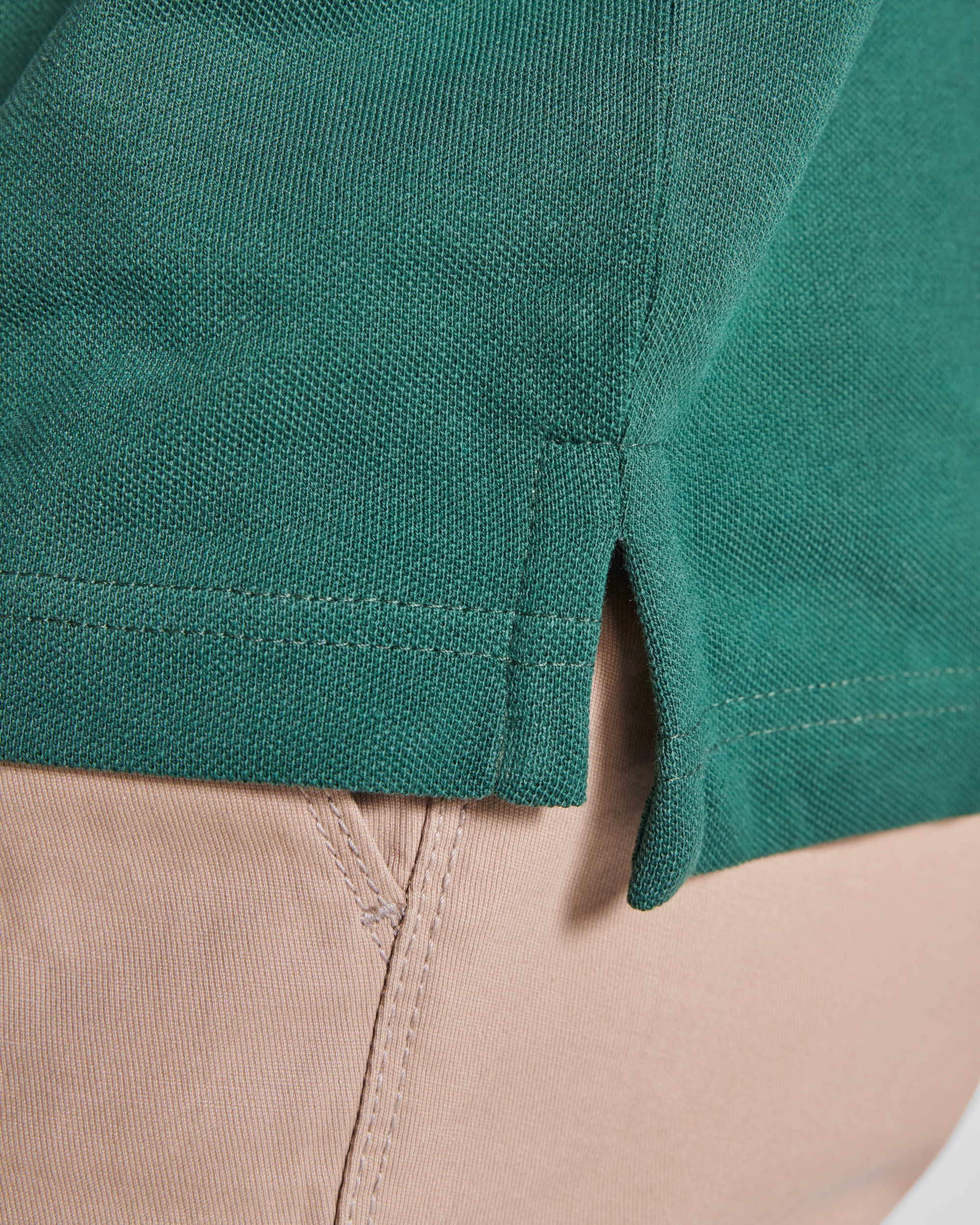 Polo de hombre con manga corta de alta calidad, en tejido confortable. Cuello con tapeta de tres botones a tono con el tejido. Solapa y ribete de la manga acanalado. Cubrecostura de refuerzo en el interior del cuello. Aperturas laterales con cubrecosturas a tono. El patronaje de la espalda es ligeramente más largo que el delantero. Doble costura en hombros, mangas y bajo de la prenda. Composición: 100% algodón peinado, punto piqué, 220 g/m².