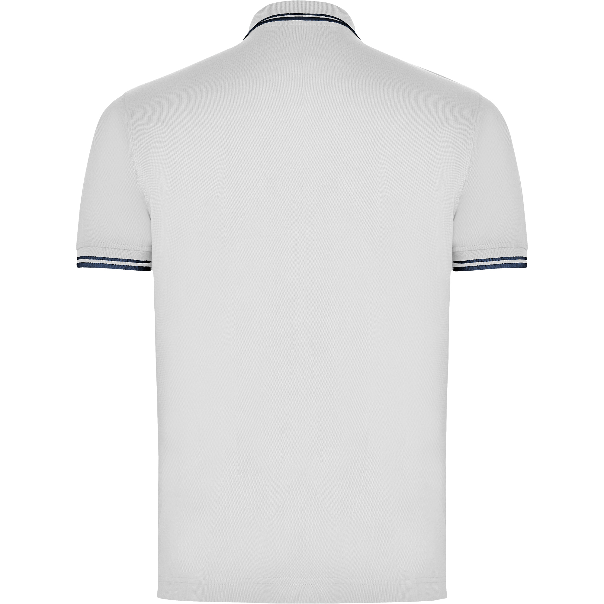 Polo de manga corta de algodón peinado. Punto piqué. Cuello y mangas tejidos 1×1 a contraste de color. Tapeta de 3 botones a contraste de color. Cubrecosturas en cuello del mismo tejido. Aperturas laterales en bajo. Composición: 100% algodón peinado, punto piqué, 230 g/m². Observaciones: *Etiqueta removible.
