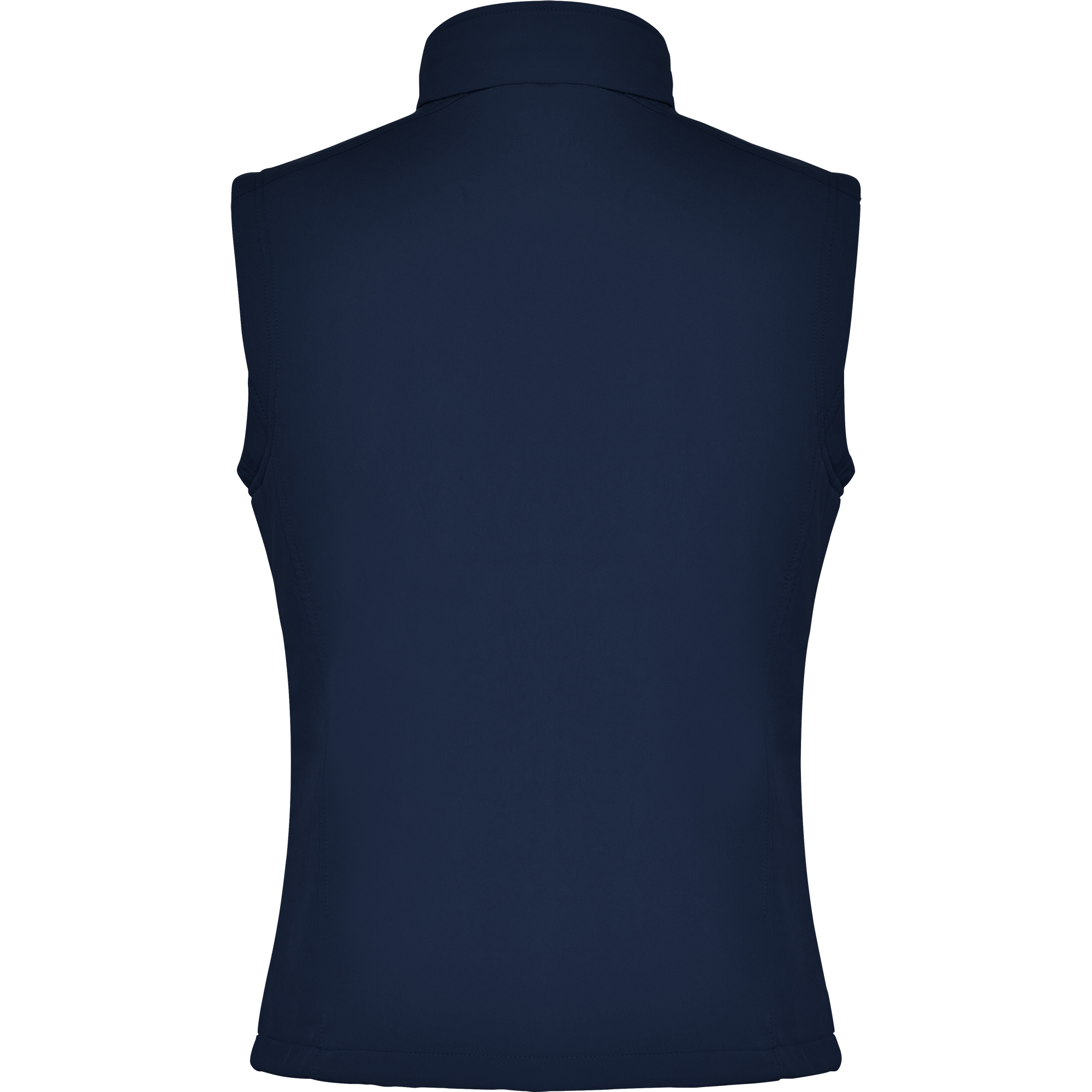 Chaleco softshell de 2 capas con cremallera frontal invertida a contraste. Interior en tejido micropolar. Repelente al agua. Dos bolsillos laterales y uno en pecho izquierdo con cremalleras invertidas a contraste. Protector de barbilla del mismo tejido invertido. Ajustadores laterales en el interior. Composición: Dos capas.