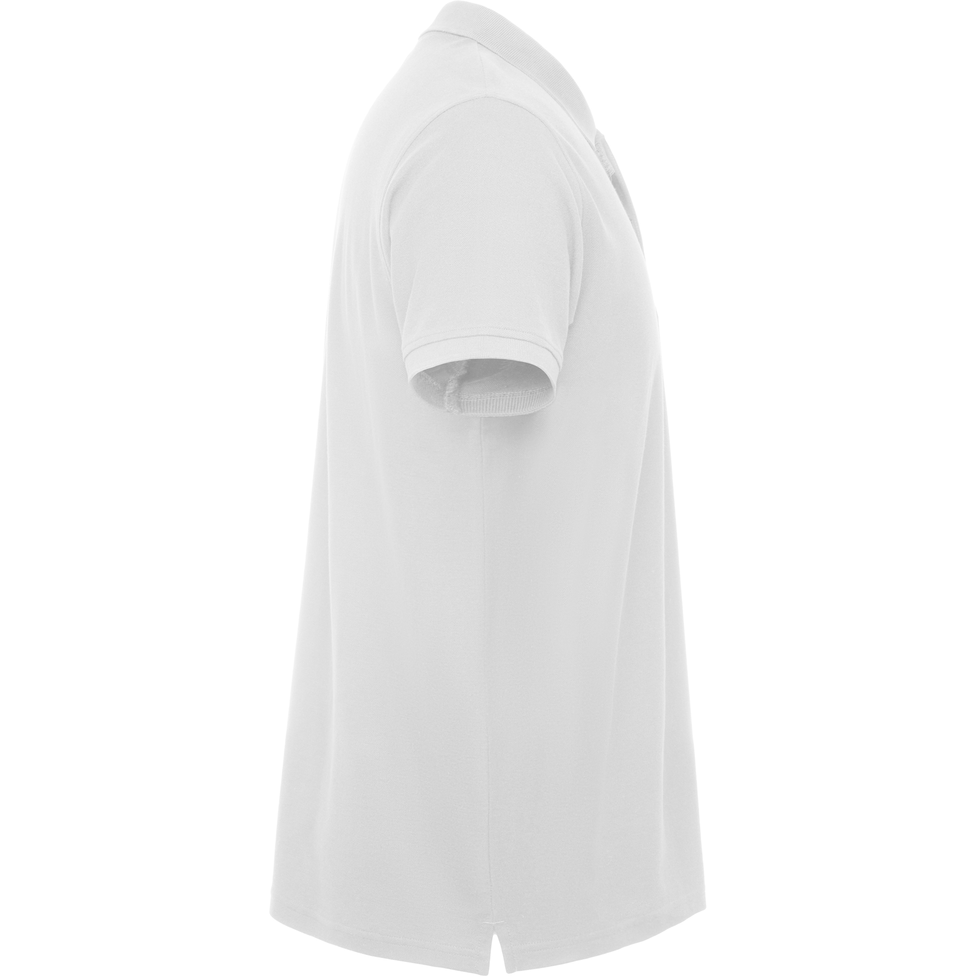 Polo manga corta de piqué. · Cuello y mangas en rib 1×1. · Tapeta con cierre velcro. · Cubrecosturas del mismo tejido. · Aperturas laterales.Composición: 100% algodón, piqué. Color: 200 g/m² Blanco: 210 g/m²Observaciones: * Etiqueta removible.