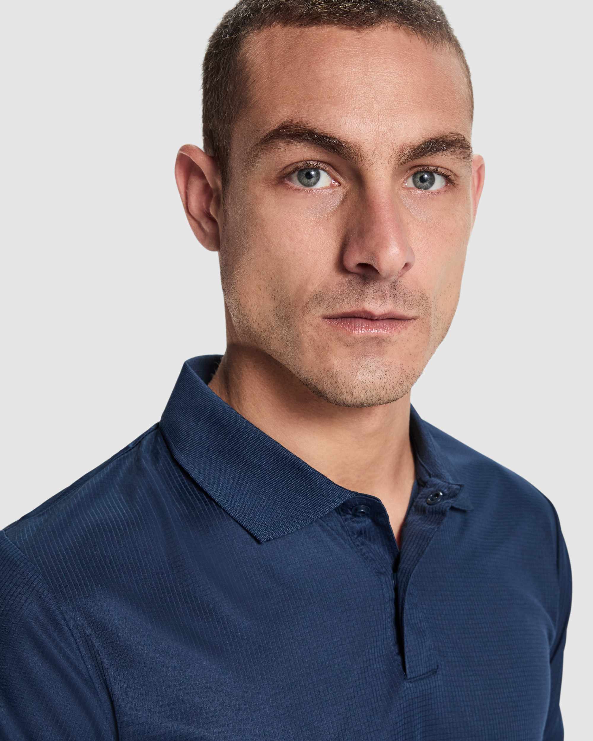 Polo técnico manga corta transpirable. Roly Control Dry. Antibacteriano. Costuras laterales adelantadas con aperturas. Cuello y puños rib 1×1 al tono. Tapeta con botones a presión al tono. Cubrecosturas del mismo tejido al tono. Certificado GRS.
