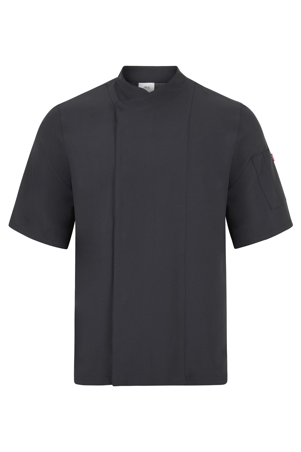 Tejido con tratamiento antibacterias y repelente de líquidos Cierre central asimétrico, con botones automáticos ocultos Cuello tirilla Espalda con tejido transpirable Coolmax®, de una sola pieza Manga tipo sastre Un bolsillo: 1 bolsillo de parche en manga izquierda con dos compartimentos