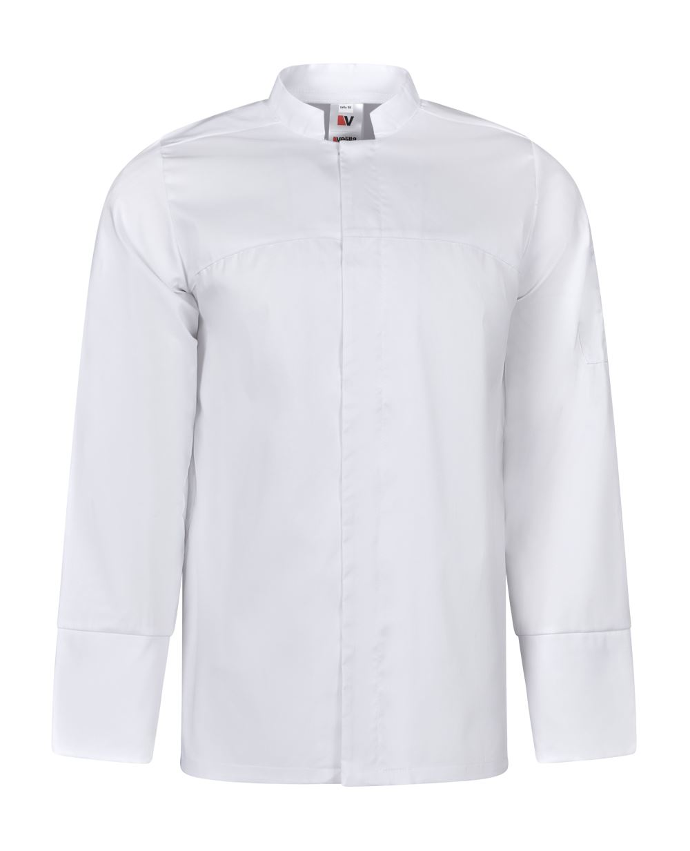 Cierre central, con botones automáticos ocultosCuello tipo maoManga tipo sastre con abertura en puñosUn bolsillo: 1 bolsillo de parche en manga izquierda