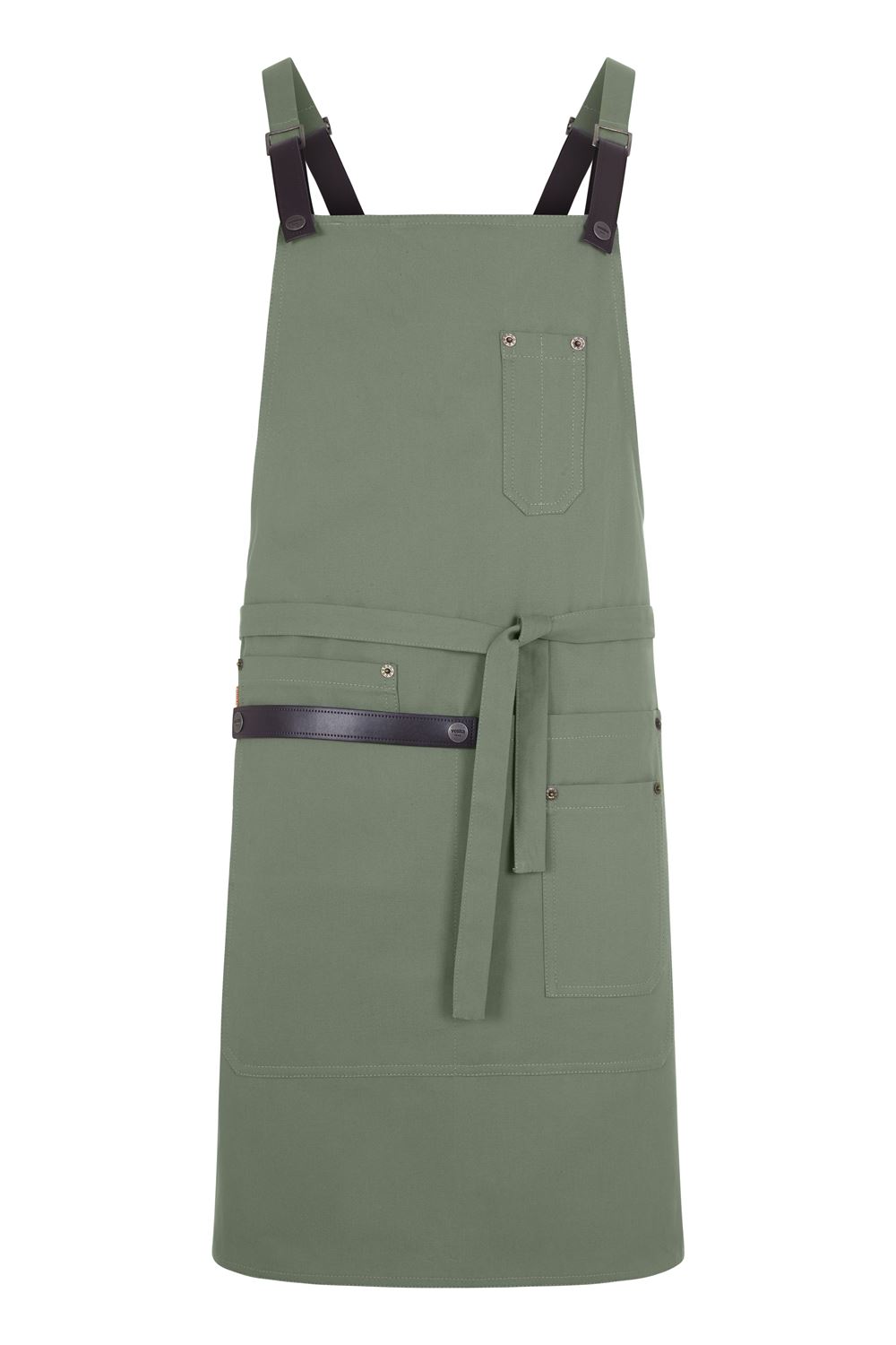 Tiras de ajuste ergonómico multiposición, en mismo tejido al tono Diseño confort: Espalda cruzada Cintas de polipiel desmontables para el lavado Pieza extraíble para colgar el paño Remaches metálicos Tejido con tratamiento repelente de líquidos Colgador interior Cuatro bolsillos: 1 bolsillo central amplio, con 1 bolsillo interior; 1 bolsillo de parche en lateral izquierdo y 1 bolsillo en pecho con dos compartimentos para bolígrafos.