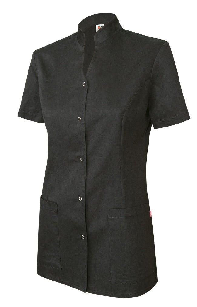Cierre central con botones automáticos de arandelaCuello tipo maoAberturas lateralesSemientalladaDos bolsillos: 2 bolsillos inferiores de parche