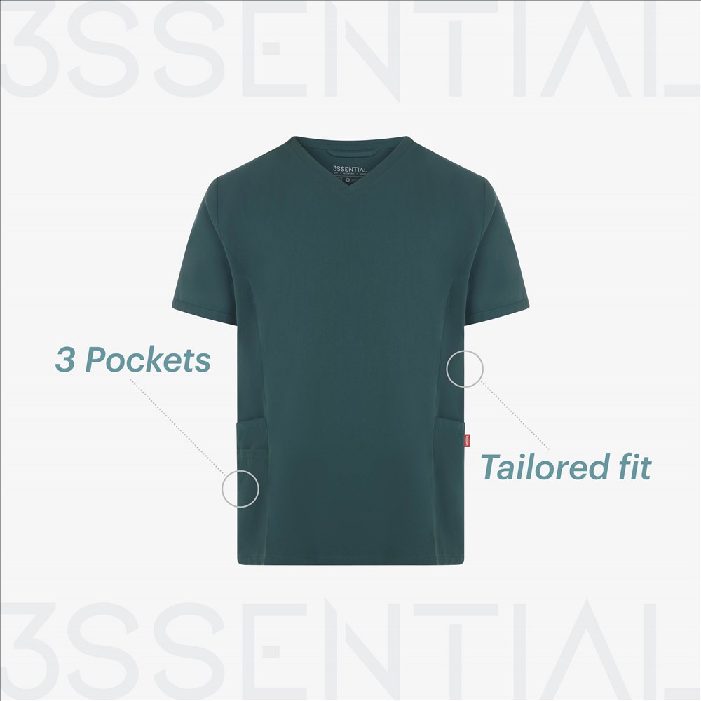 Cuello en picoAberturas traserasCorte deportivoTejido con tratamiento antibacterias y repelente de líquidosTejido lavable a 60ºCTacto melocotónTres bolsillos: 3 bolsillos de parche, uno de ellos con compartimento para bolígrafo